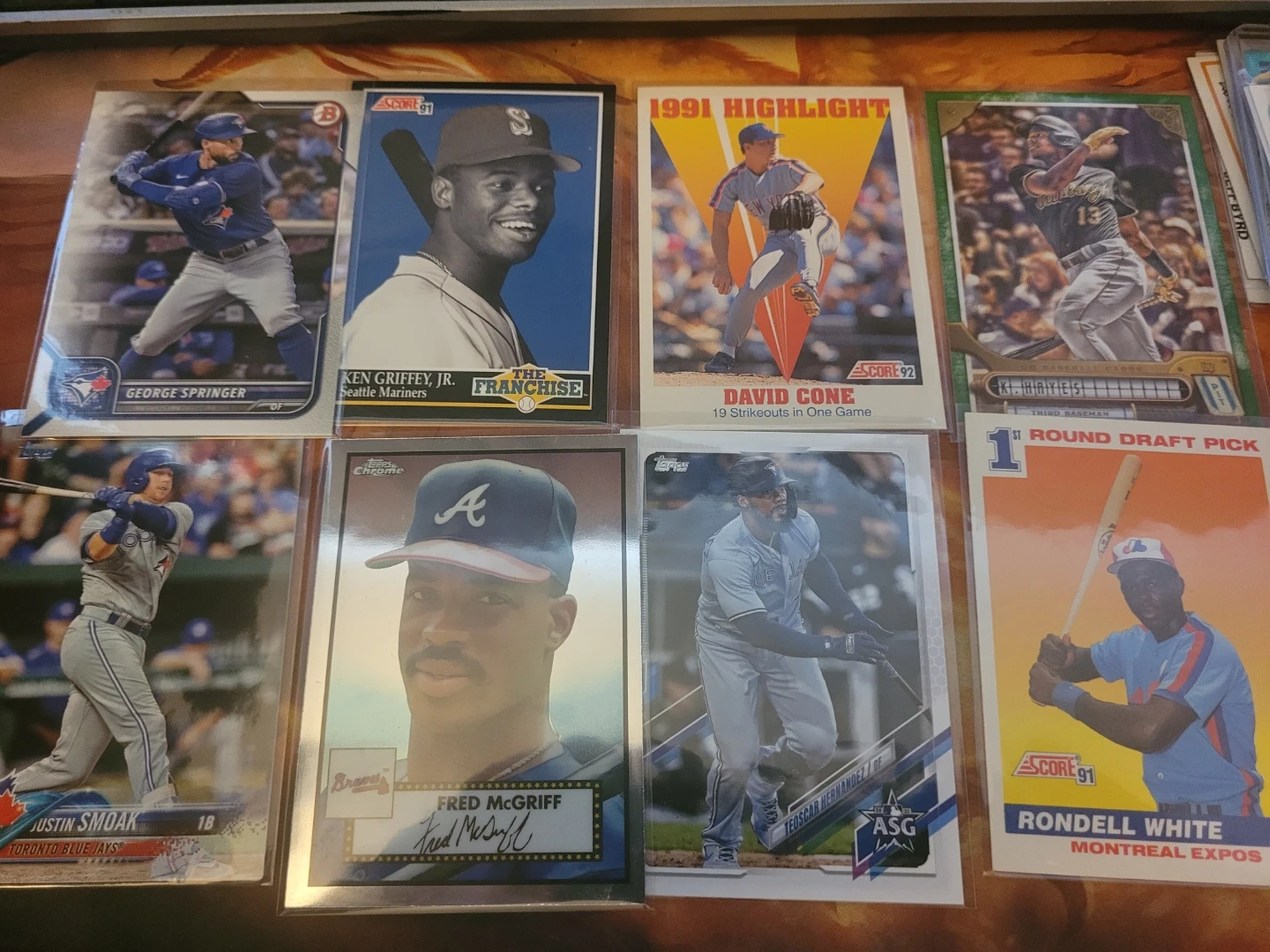 I have a mixed lot of 80 baseball trading cards available. They feature various players and teams, including some signed cards. Lots of Blue Jays - young and old. Great for collectors or anyone interested in baseball memorabilia!