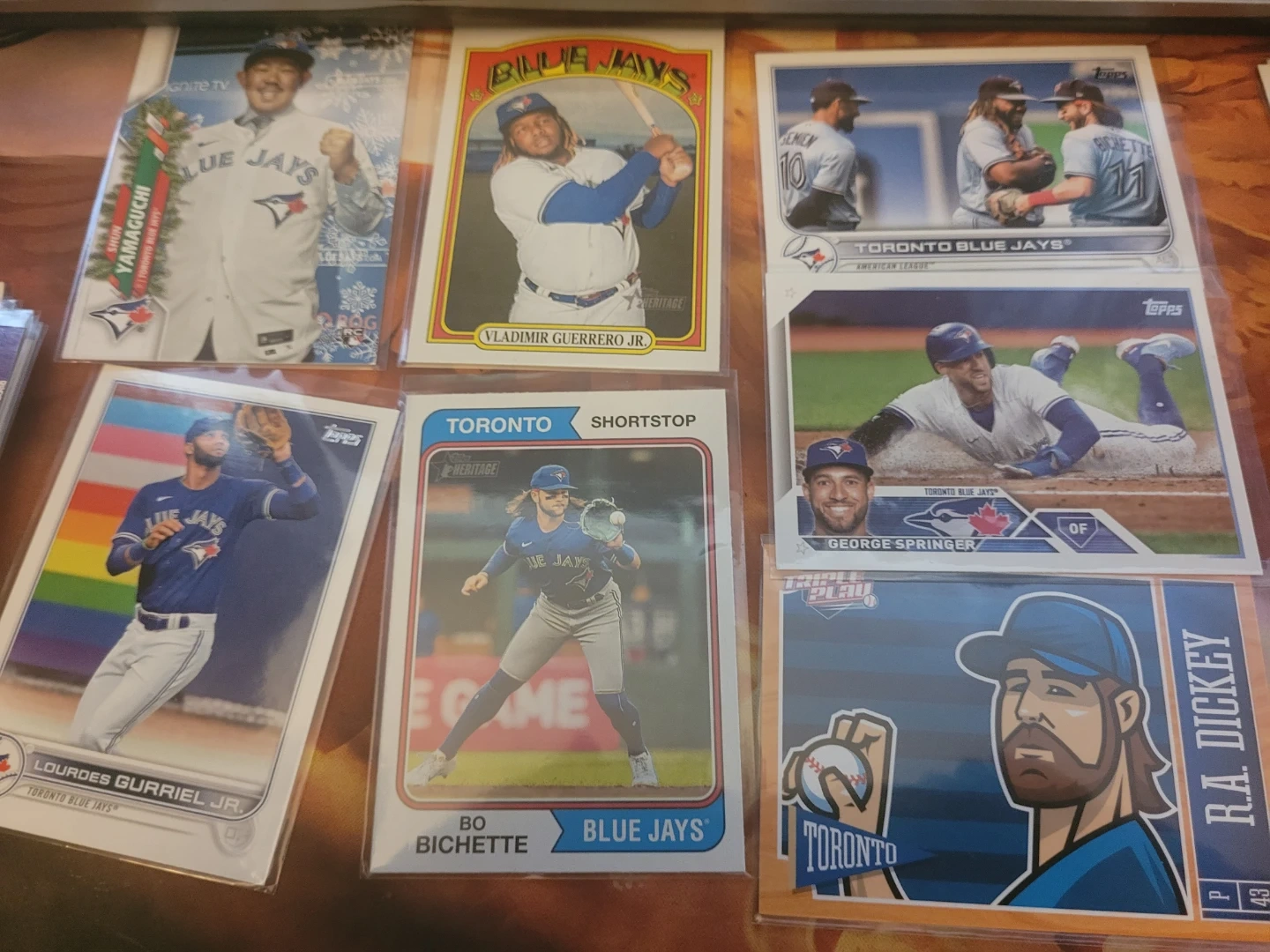 I have a mixed lot of 80 baseball trading cards available. They feature various players and teams, including some signed cards. Lots of Blue Jays - young and old. Great for collectors or anyone interested in baseball memorabilia!