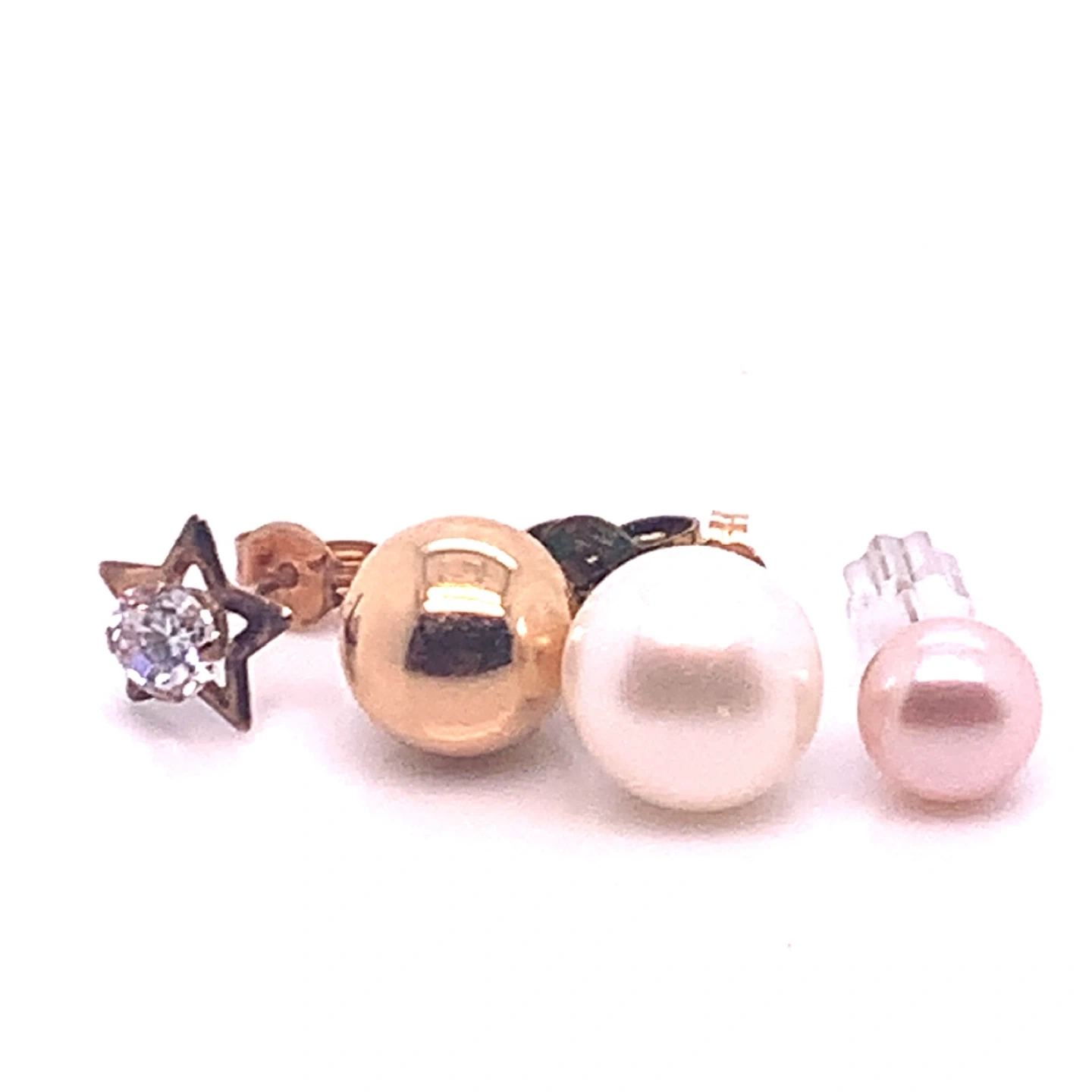 14k Gold Lot of 4 single Stud Earrings - Gold, Pearl, Star