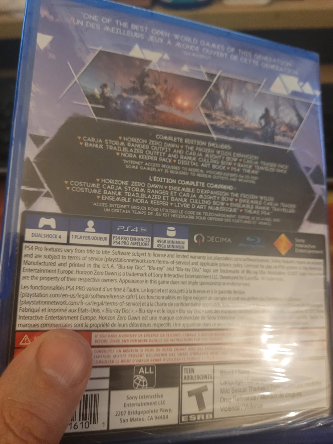 Selling Horizon Zero Dawn Complete Edition for the PS4. This includes the Frozen Wilds expansion, various outfits, and weapons. It's a great game for anyone who enjoys open-world adventures