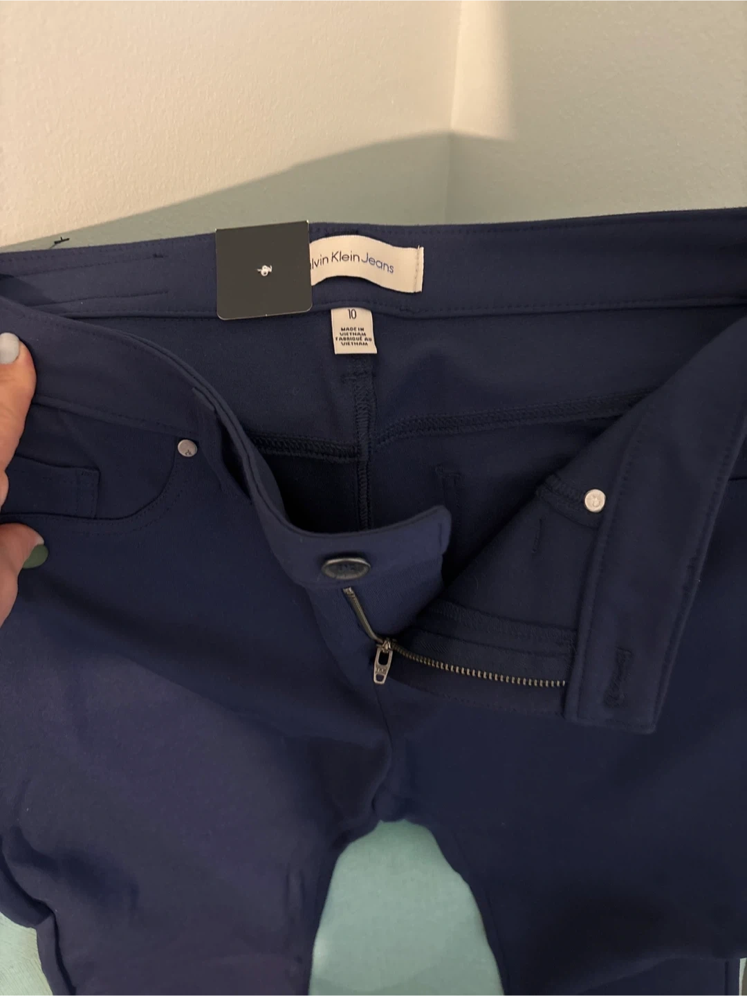 Selling a pair of Calvin Klein Jeans in dark blue, size 10. They're in great condition and ready for a new home!