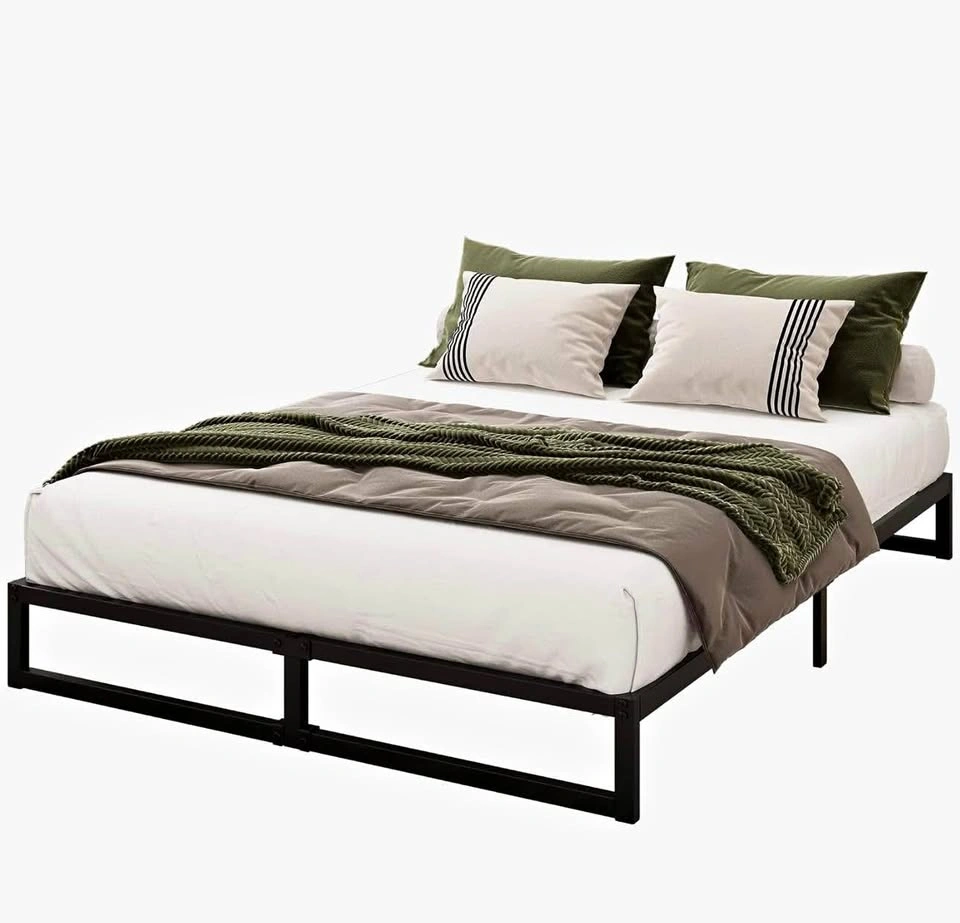Hunlostten 12" High Heavy Duty California King Bed Frames No Box Spring Needed, Metal Platform Cal King Bed Frame with Round Corners, Easy Assembly, Noise Free, Black