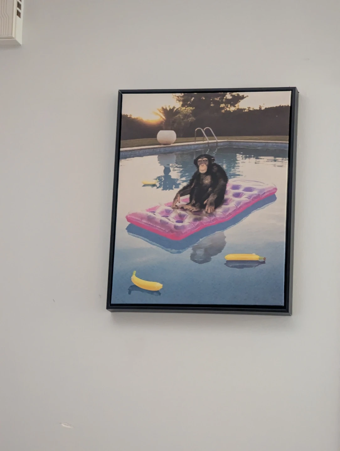 Buy & SellChimpanzee Poolside ArtChimpanzee Poolside Art$17Framed art featuring a chimpanzee lounging on a pink raft in a pool, complete with floating bananasConditionNewWHERE TO MEETAugusta aveView MapSELLERKareem GadKensington231 review0 chats·0 favorites·21 views