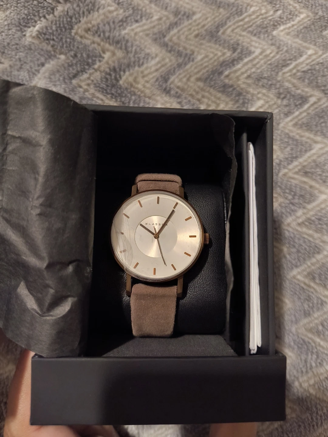 Brand new KLASSE 14 women's watch in vintage Gold Brown, 36mm with the protective film still on the face, tissue paper, foam and all original packaging including the manual.