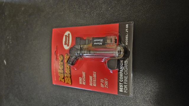Selling brand new Micro Blazer jet lighters – wind-resistant and butane refillable with a slanted nozzle. Ideal for cigars, outdoor use, or everyday carry. Powerful flame – up to 2500°F tolerance Wind-resistant torch flame Refillable with butane Precision angled nozzle Brand new in packaging Located in Richmond $10 each or 3 for $25 – great deal for quality torch lighters.