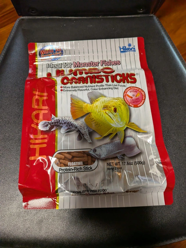 Looking for the best food to power up your predator fish? Hikari Jumbo Carnisticks are the ultimate floating pellet designed for large carnivorous fish like arowanas, gars, snakeheads, and other top-tier predators. Extremely high in protein for rapid growth & muscle development Mimics live food without the risk of parasites Floating sticks keep your fish active and engaged Premium Japanese quality – best food money can buy Each bag is 500g, factory sealed, and ready to go for $40. Get your fish on the best diet possible!