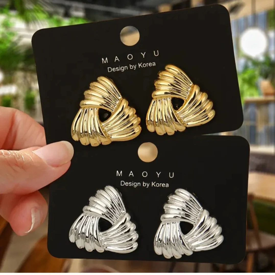 10Selling these stylish triangle earrings from MAOYU Design by Korea! They come in both gold and silver colours. Perfect for adding a touch of modern flair to any outfit