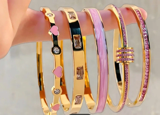 Elevate your wrist game with these chic gold-toned bangles, each boasting a unique design! These bracelets are brand new and ready to add a touch of glamour to any outfit. * Stylish gold-toned finish * Various designs including heart accents and crystal embellishments * Easy-to-use closure These bangles are priced to sell, offering a stylish accessory without breaking the bank. Don't miss out on these beauties! And a friendly reminder: if you see this ad, the bracelets are still available! Please check out my other listings