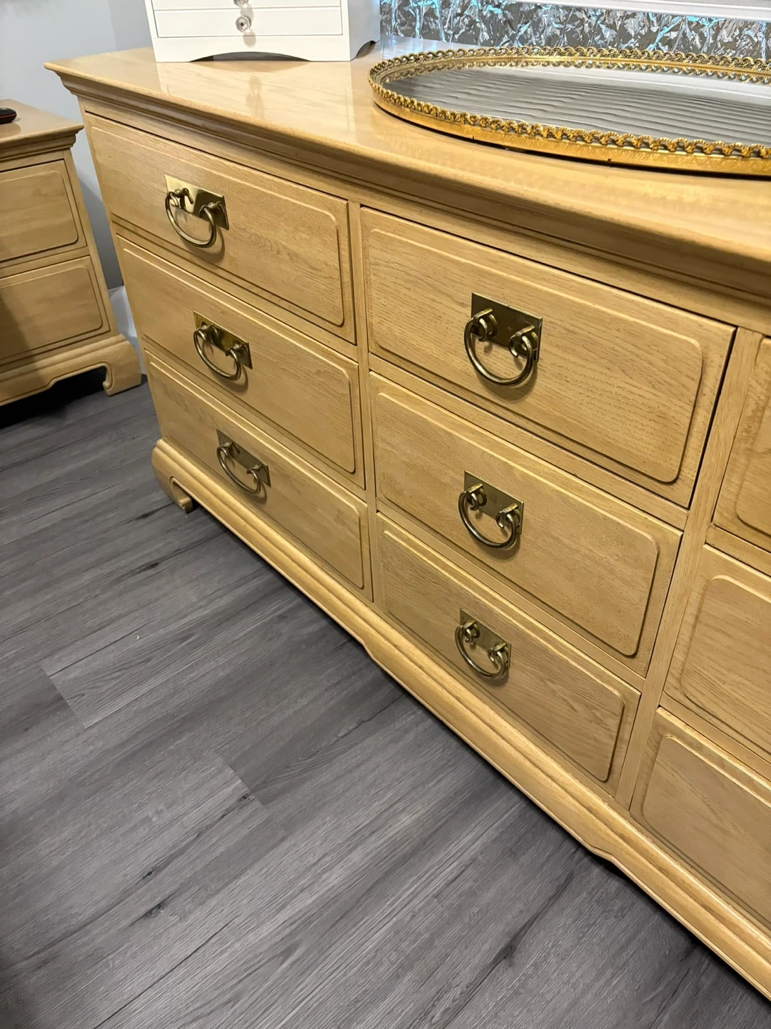 Wooden Dresser, 2 nightstands, and Desk Set
