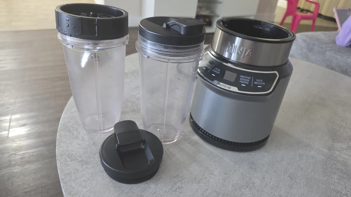 Selling a Ninja blender that comes with two cups. It's perfect for making smoothies or crushing ice. It's in great condition and ready for a new home!
