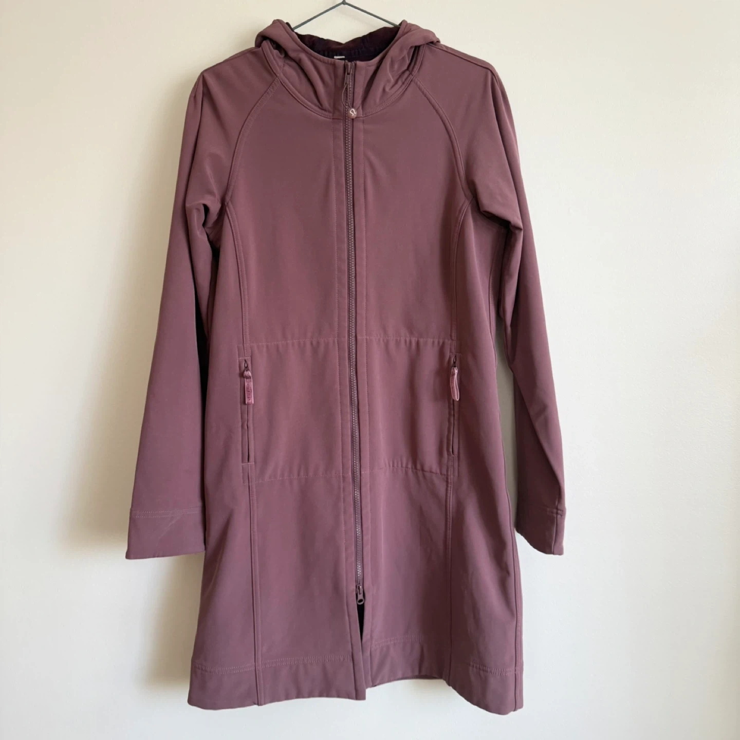 Lululemon mauve rain jacket. I can’t confirm size but I think it’s a size 8!