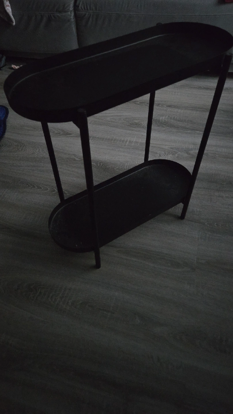 Selling a sleek black metal two-tier side table. It's in great shape and would look lovely in any living room or bedroom. Perfect for displaying plants or holding your favourite books!