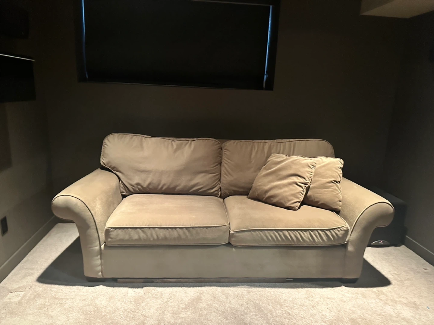Selling a comfy beige sofa that's perfect for any living space! It comes with two matching pillows to complete the look. The sofa is in good condition, ready to add warmth and style to your home