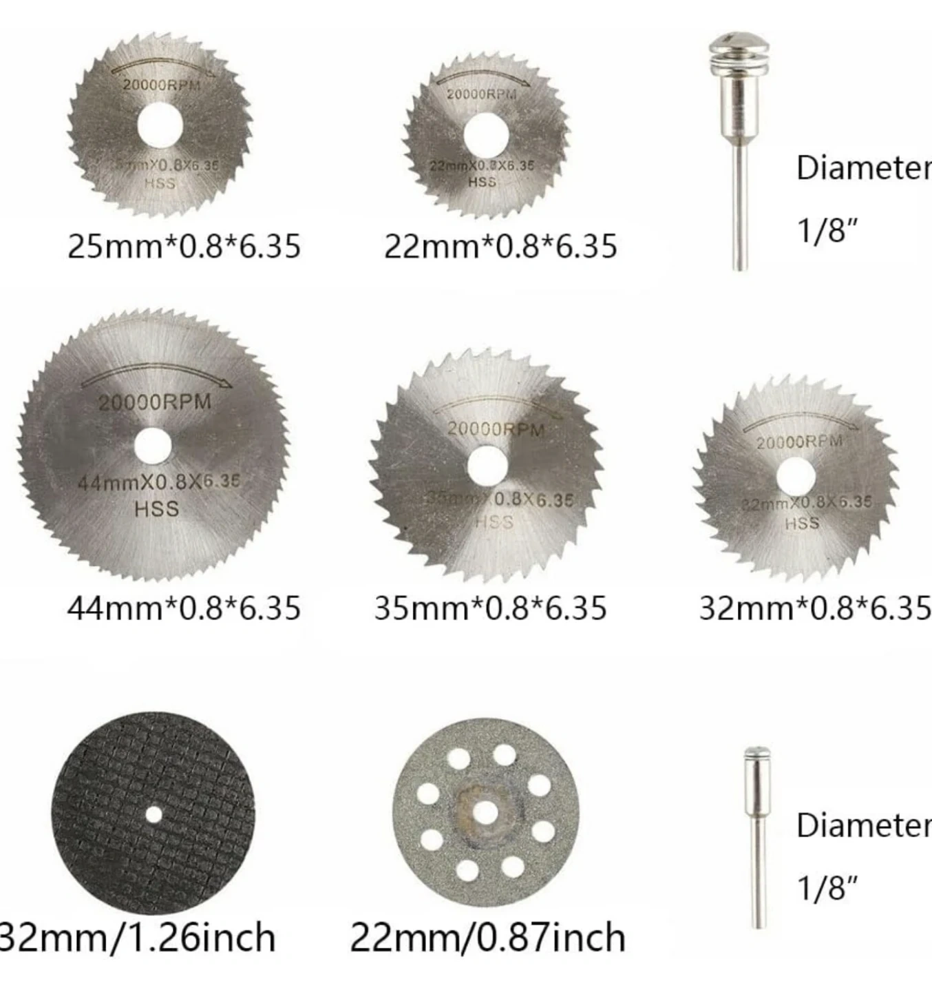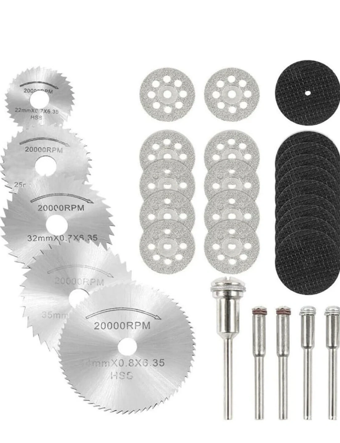 This set includes a variety of rotary tool cutting discs, perfect for different materials and projects! You'll get high precision and smooth cutting surfaces with these discs. The set includes discs of various sizes, including 25mm, 22mm, 44mm, 35mm, and 32mm