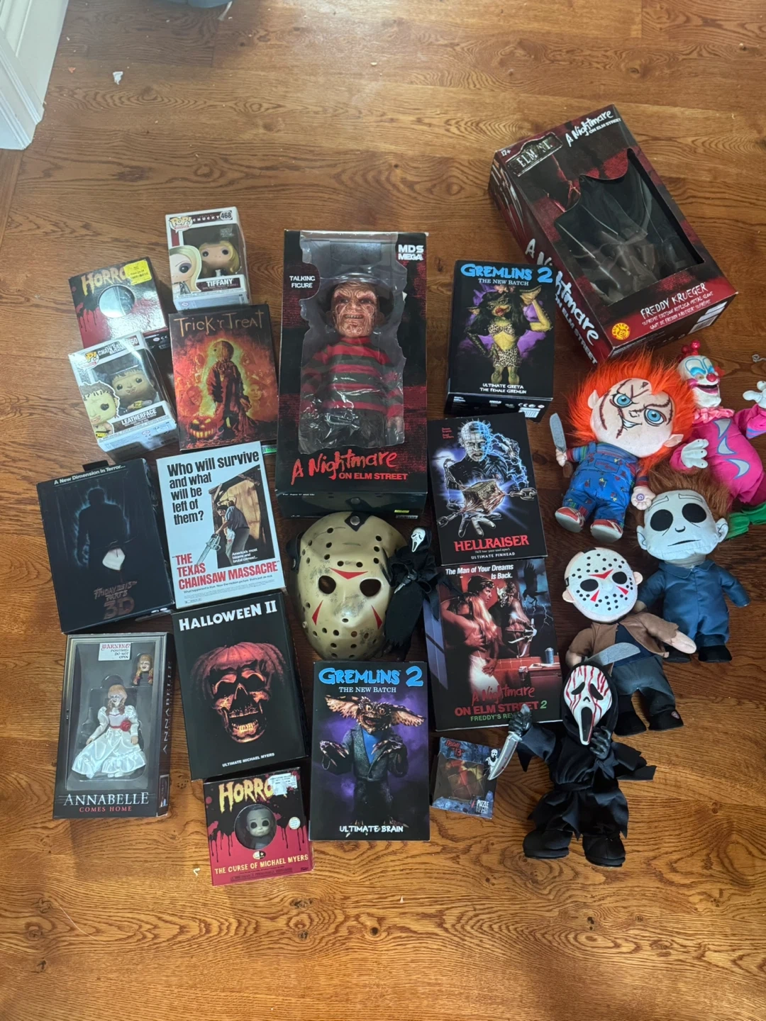 Leather face has a broken chainsaw but he’s still able to pose and hold it