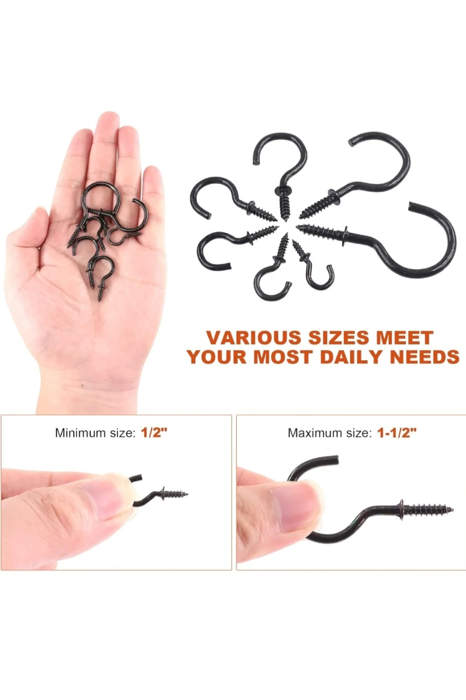 Selling a Tanstic assortment of 205 ceiling hooks and cup hooks. These hooks come in various sizes, ranging from 1/2" to 1-1/2", to meet your daily needs. They feature a sharper screw point and cleaner thread for easy installation. The cup hooks are zinc-plated to prevent rust and have high tensile strength and quality materials