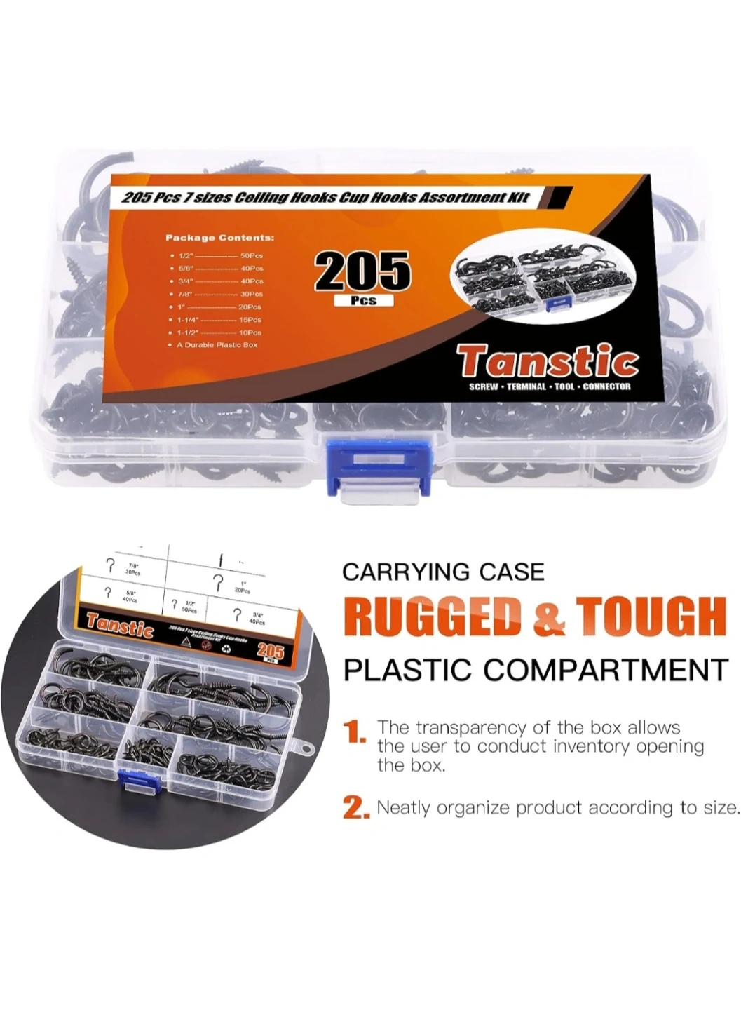 Tanstic 205 Pcs Ceiling Hooks Cup Hooks Assortment