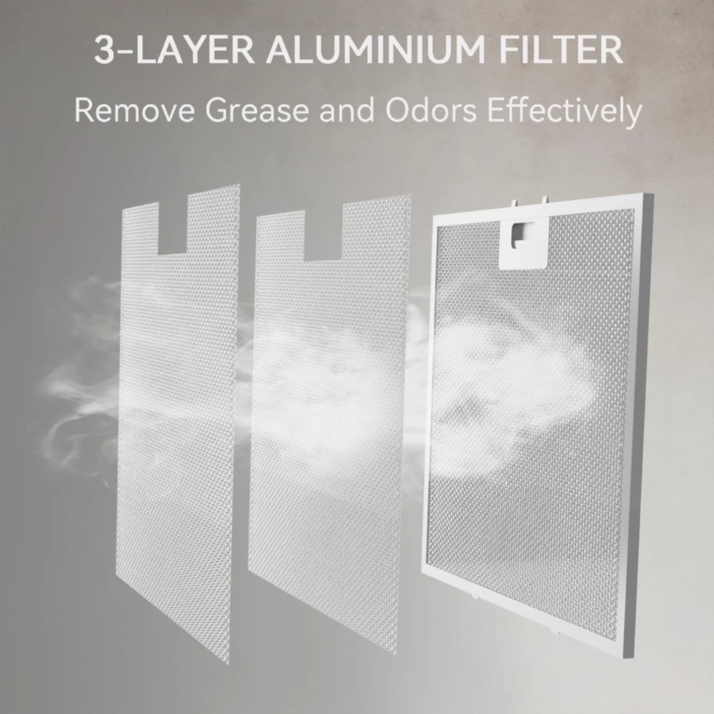 【EASY FOR INSTALLATION】This 30 inches range hood is very easy to install. With just a few steps followed by the user manual, you can successfully install the range hood under your cabinet. Please remove the Blue Protective Film before use