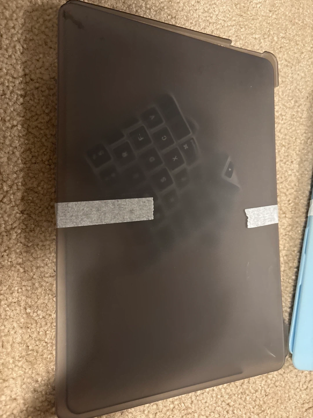 Selling a blue iPad case in great condition! It features a black design element and a stand for easy viewing. It's a sturdy case that will keep your iPad protected 12.9 inch iPad, Apple case
