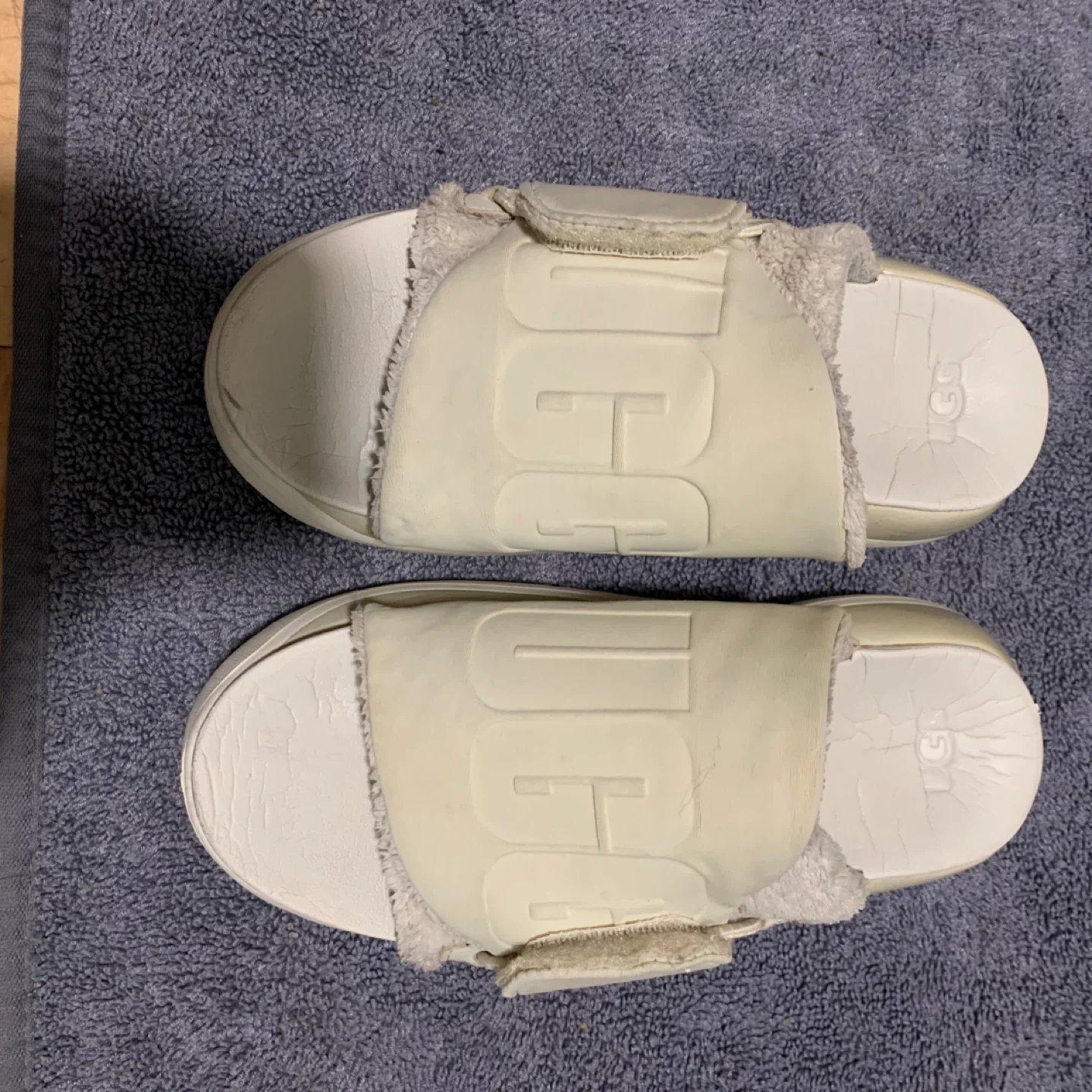 Selling a pair of UGG cream colored slides. They are size 7 and have some wear but has lots of life left!!