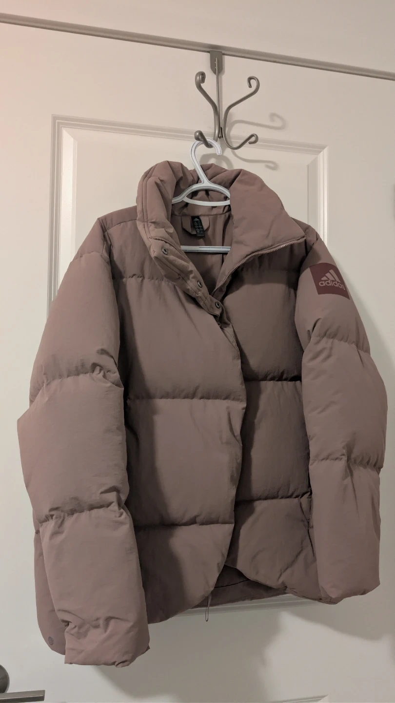 Selling a stylish Adidas padded puffer jacket in size small. It's in great condition and perfect for staying warm during the colder months! The jacket features a comfortable fit and the classic Adidas design on the sleeve.