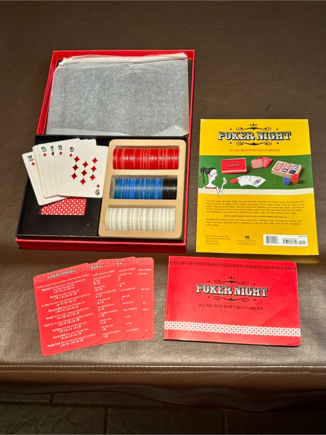 With this portable box, complete with chips, cards, cheat sheets, and instructions for 14 different poker games you'll be ready to start dealing.