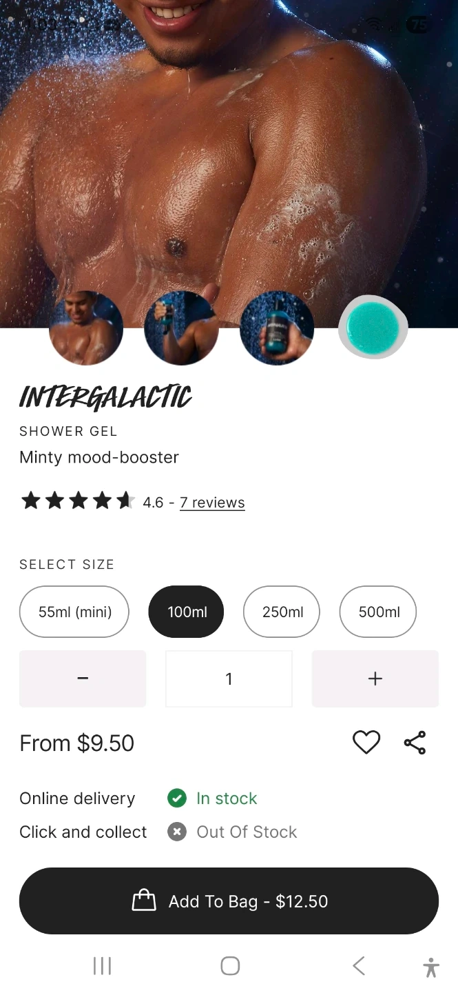 Selling a bottle of Lush Intergalactic shower gel! This shower gel cleanses in the cosmos with its sparkly mix of revitalizing peppermint and grapefruit. It's the 100ml size.
