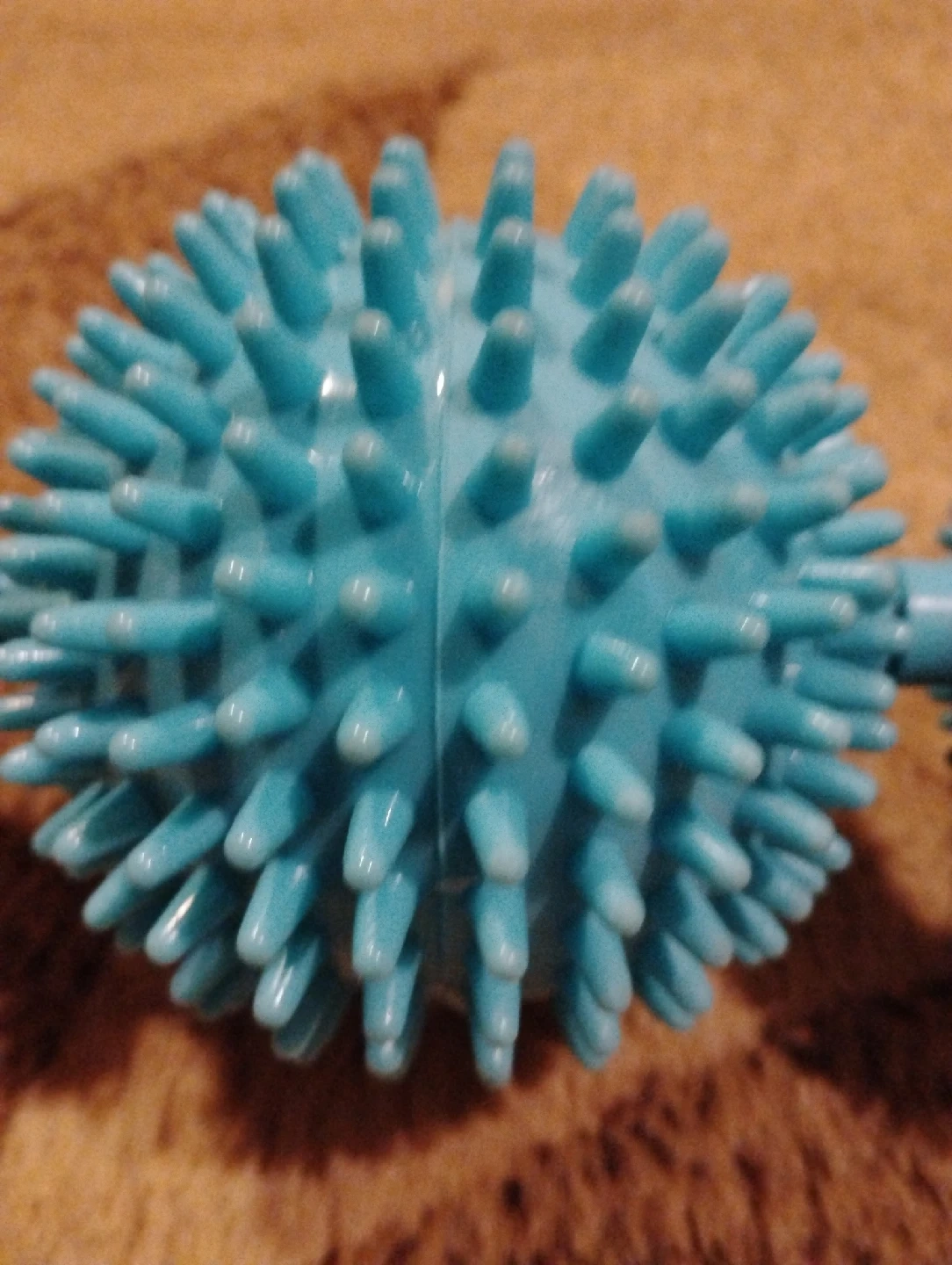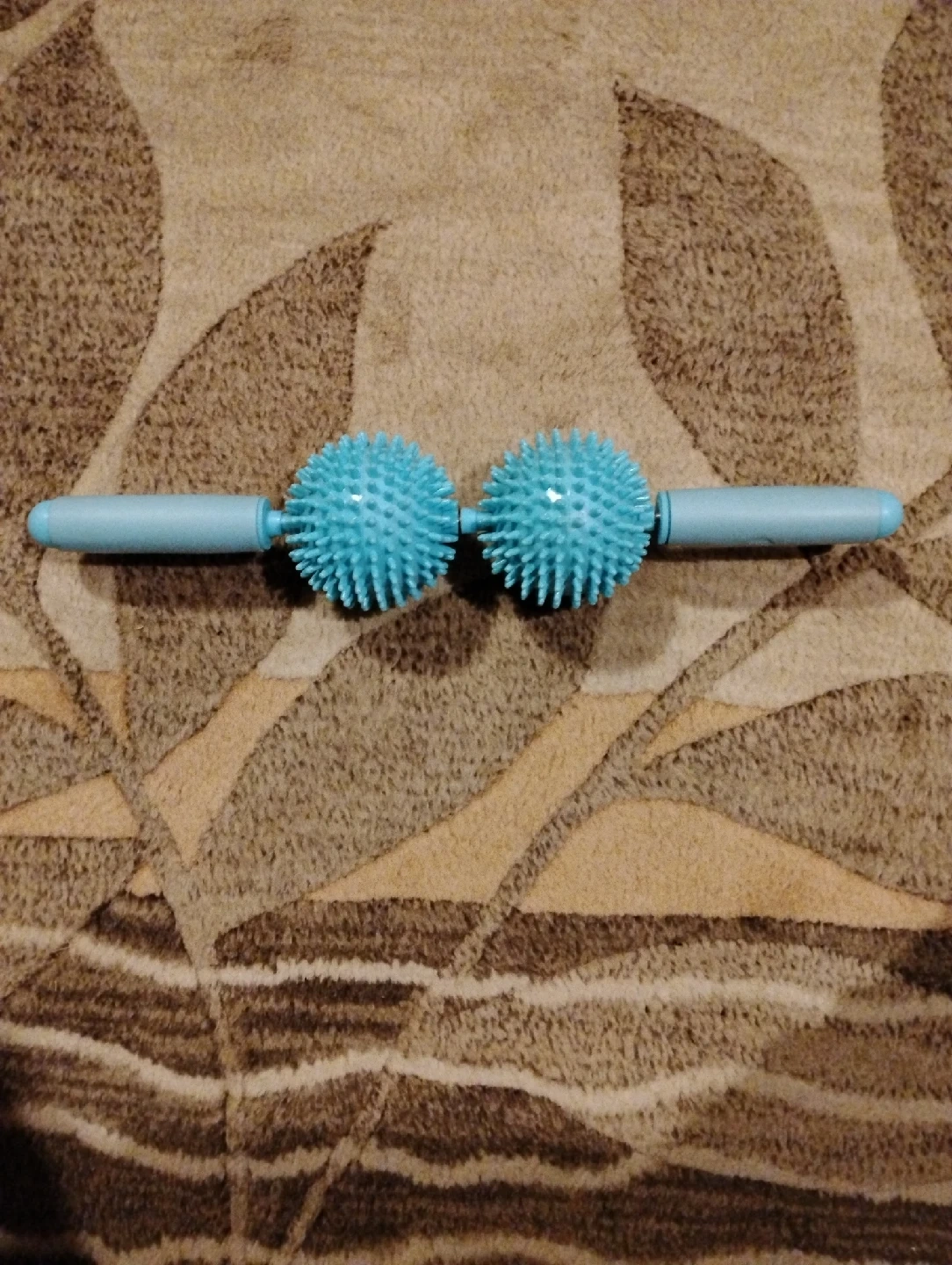 Here's a spiky massage roller, perfect for relieving muscle tension. It's in great condition and ready to help you relax after a long day! The roller is a nice light blue colour.