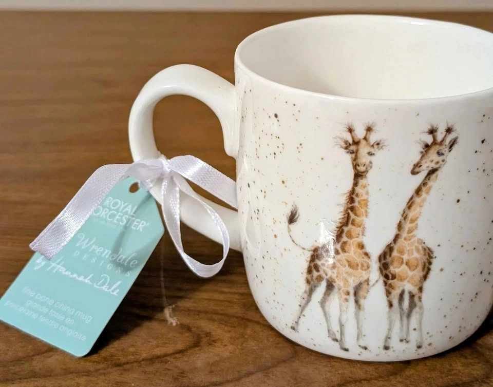 21New 11 oz bone china hand painted design of a mother giraffe kissing her baby mug. This would make a perfect gift for a new mother or nature loving person. The mug is dishwasher and microwave safe. North St Catharines pickup, cash only please