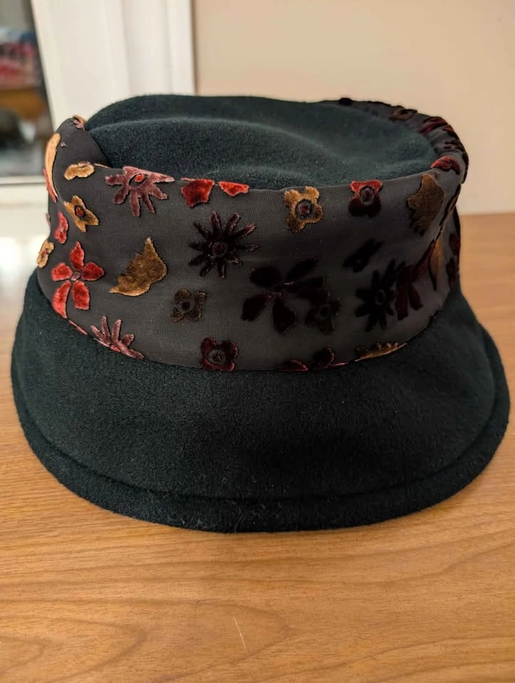 Women's Retro Black Fleece Artisan Hat with Floral Velvet Band