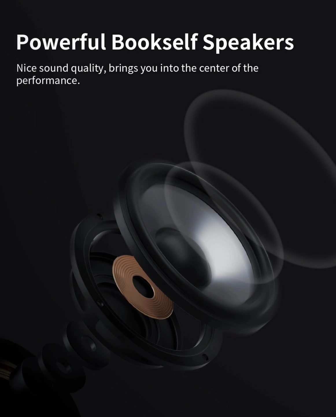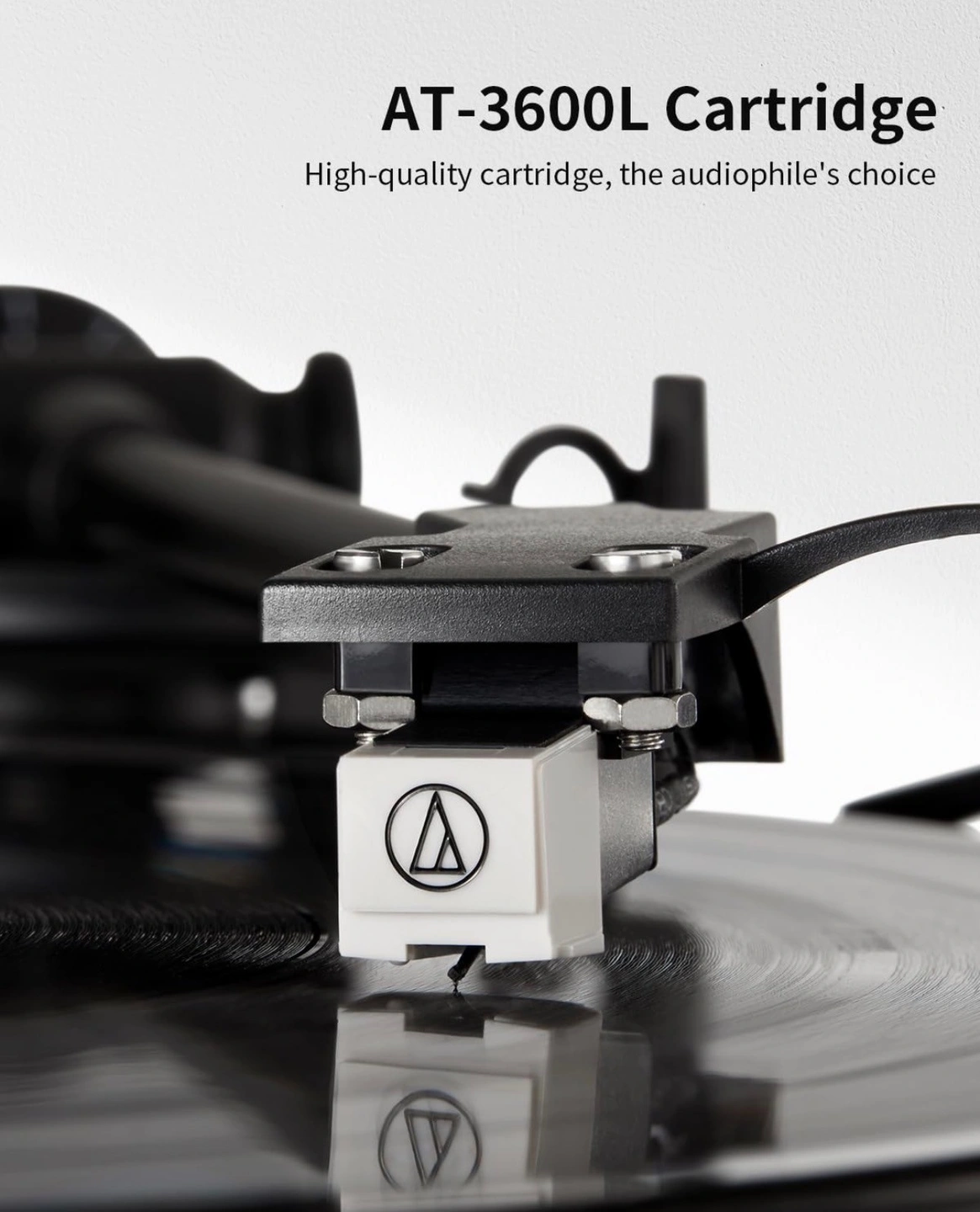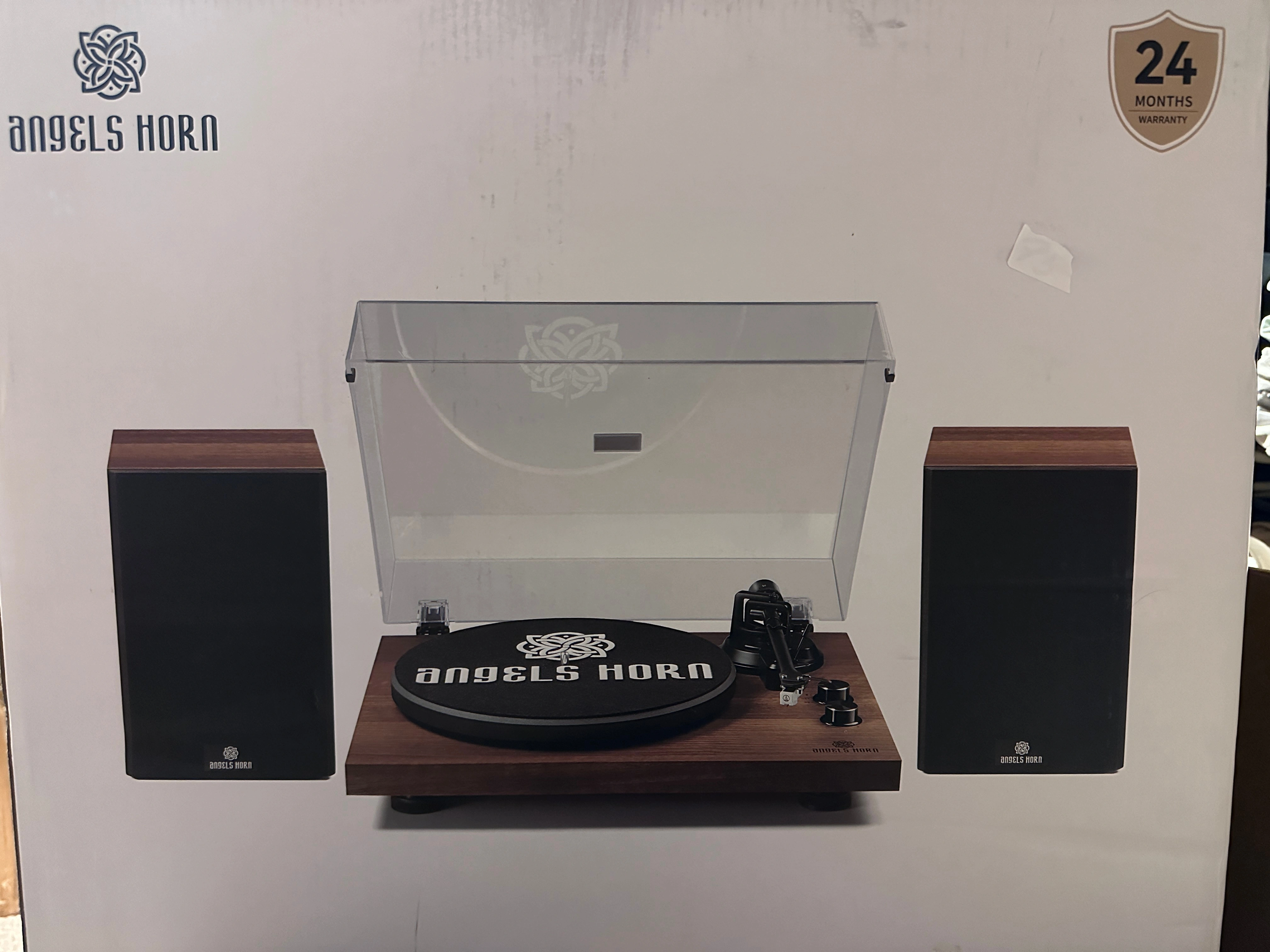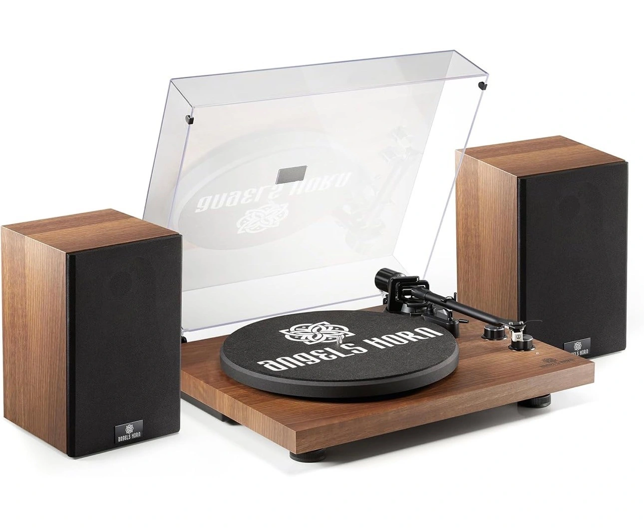 73ANGELS HORN Vinyl Record Player, Hi-Fi System Bluetooth Turntable Players with Stereo Bookshelf Speakers, Built-in Phono Preamp, Belt Drive 2-Speed, Adjustable Counterweight, AT-3600L NOTE: New in box Enjoy High-Fidelity Sound: All of our budget and the engineering efforts for this vinyl record player went toward sound quality. Imagine your friends will be wowed by this record player's stylish build and warm, distortion-free speakers. At that very moment, you will believe it is a record player worth having. High-Quality Turntable Experience: Mention the performance of this vintage vinyl record player, you could expect its sense of realism, high-end AT brand phono cartridge, well-made woods, instrumental authenticity, and detail which more affordable models just can’t match for. Integrate with your house: The natural wood appearance design suits perfectly with your bookshelf or furniture, this set of vinyl record player with 2 bookshelf speakers are also an awesome decor to have as well. They won’t take up much space in the room and won't clash with the other home decor. More features: Quieter belt-driven, built-in Bluetooth 4.2 input for playing your music from other mobile devices(digital music), built-In phono preamp and RCA line output, stable iron platter for educing vibration, adjustable counterweight force to avoid skipping and distortion, 2 speeds(33 1/3 & 45RPM), easy to install and use. Packaging & Services: Two layers of separate packaging color boxes with detailed user manuals and a high-end vintage look, it will be a perfect gift for birthday and Christmas, especially for a music lover.