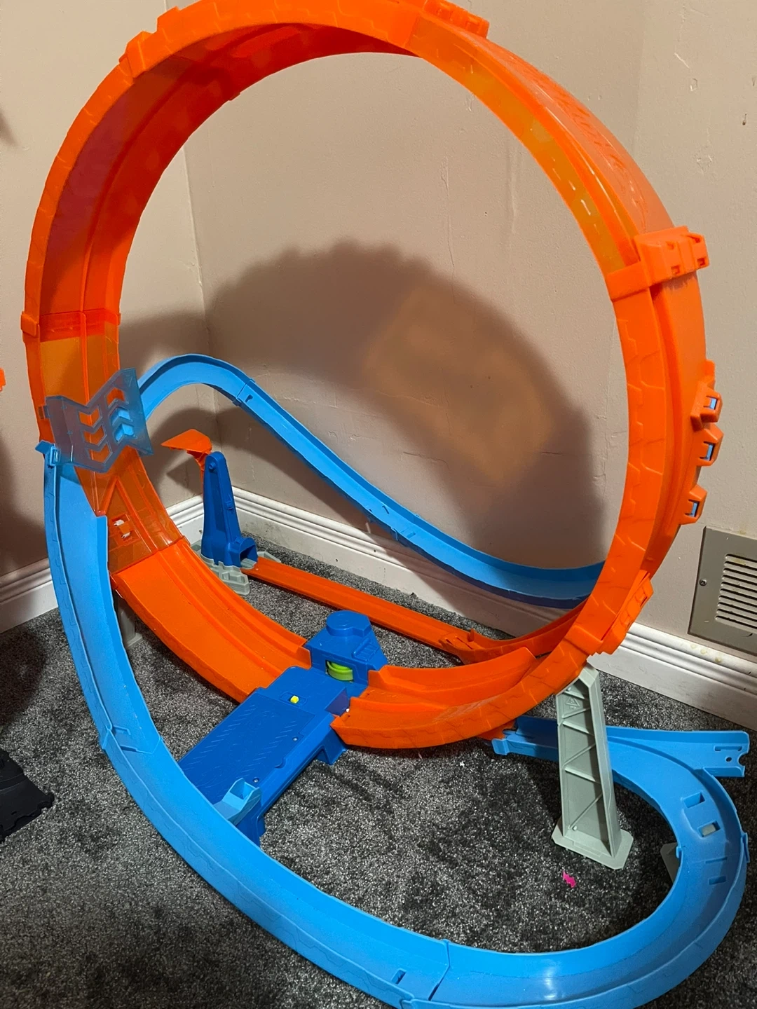 Selling a Hot Wheels track set! It's in great shape and ready for some racing fun. The set features a battery operated loop that launches your cars around. Can be connected to other hot wheels tracks