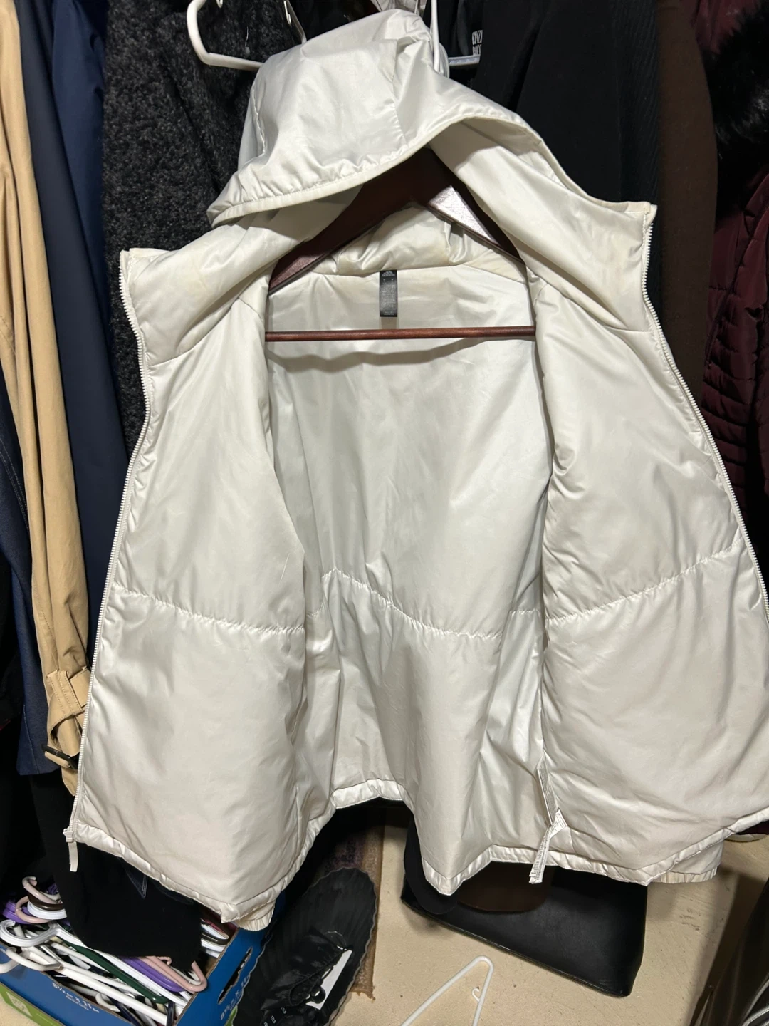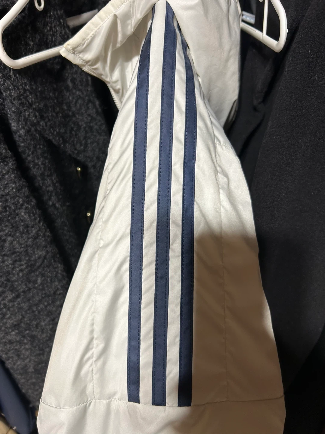 Selling an Adidas padded jacket in size L. It's a stylish and comfy piece, perfect for layering during cooler weather. The jacket features the classic Adidas three-stripe design on the sleeves. It's in great condition and ready for a new home!