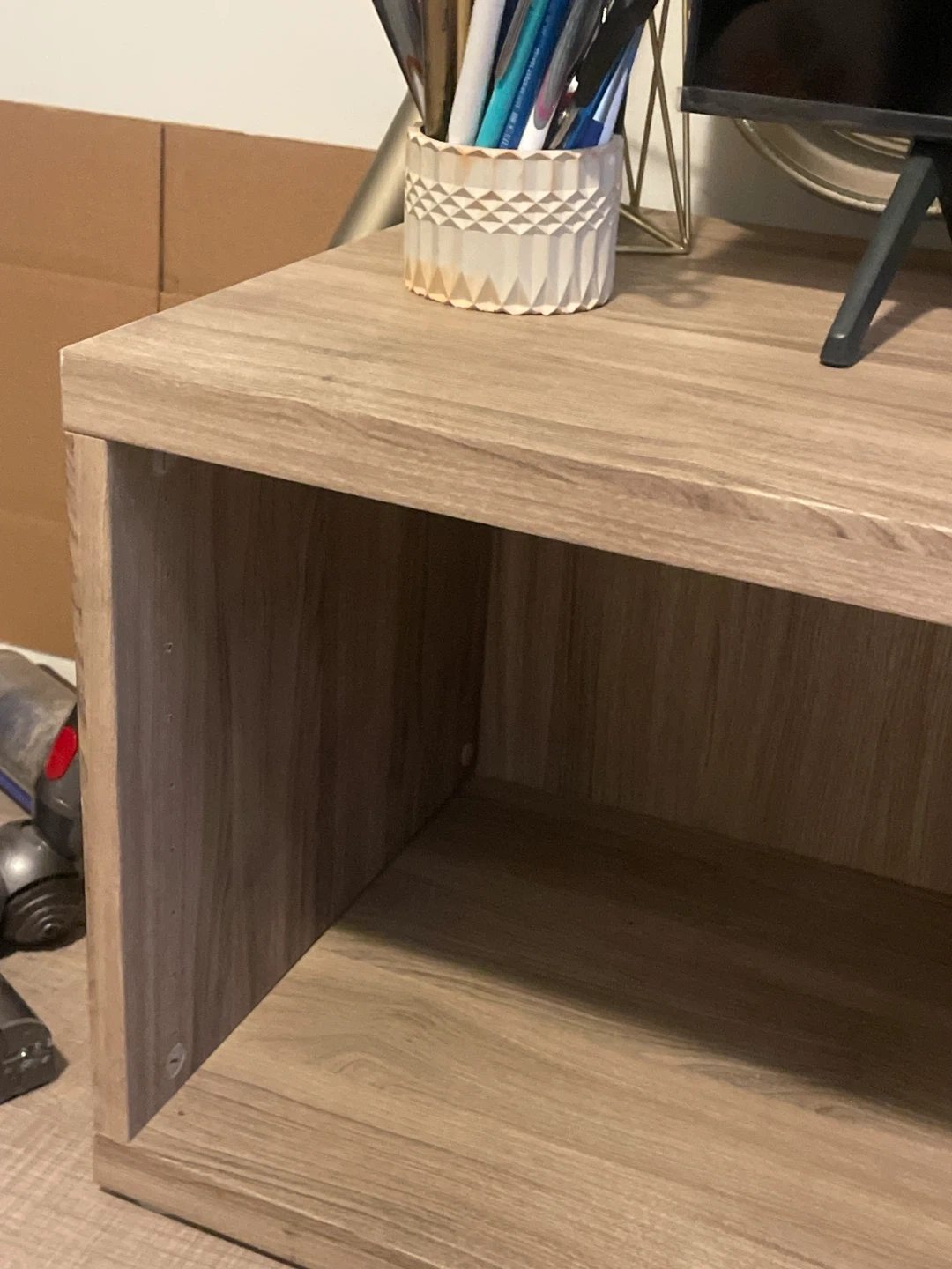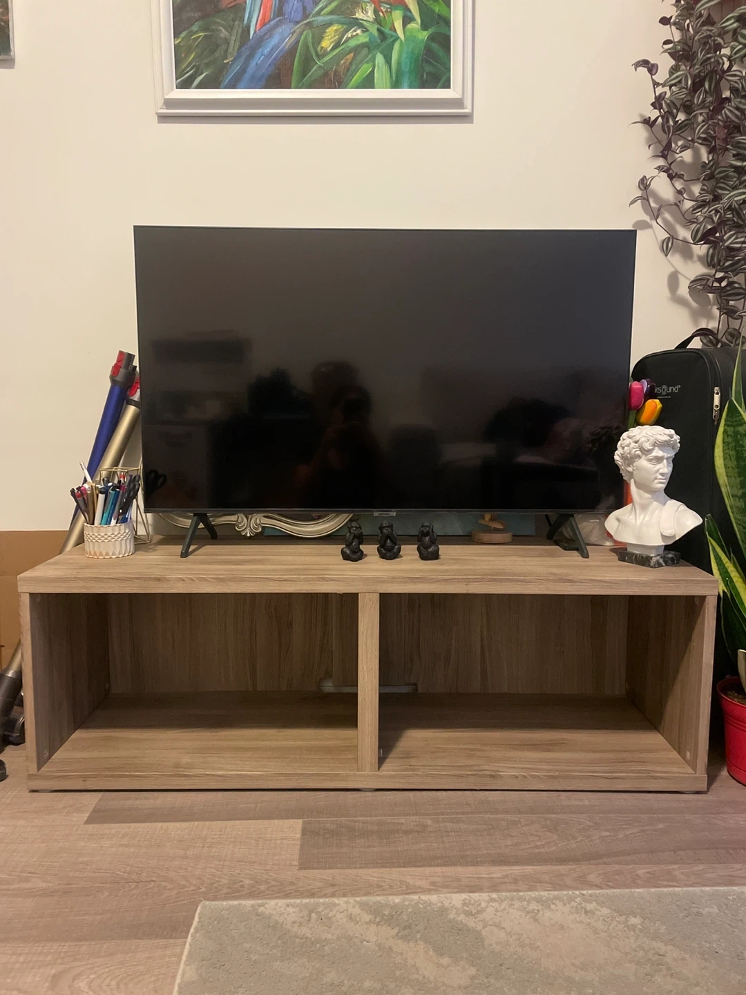 85Selling a light brown TV stand in great condition. It has two open shelves, perfect for storage or displaying items. It's a simple and functional piece that would fit well in any living room setup. Size: 1 M* 40 CM