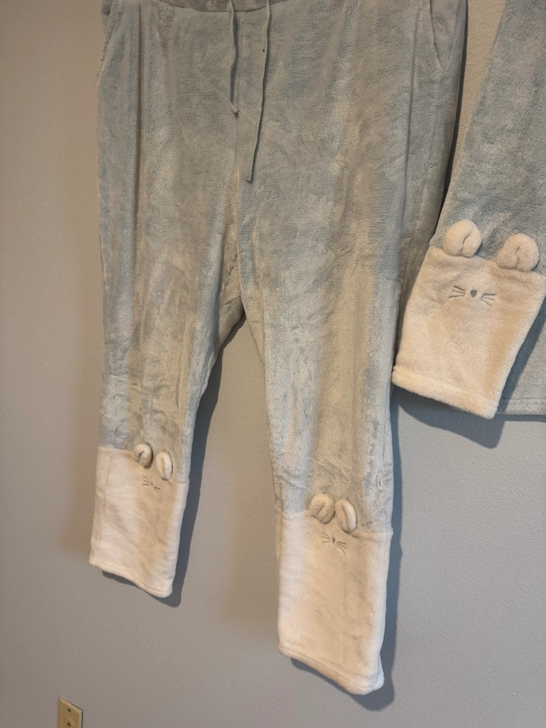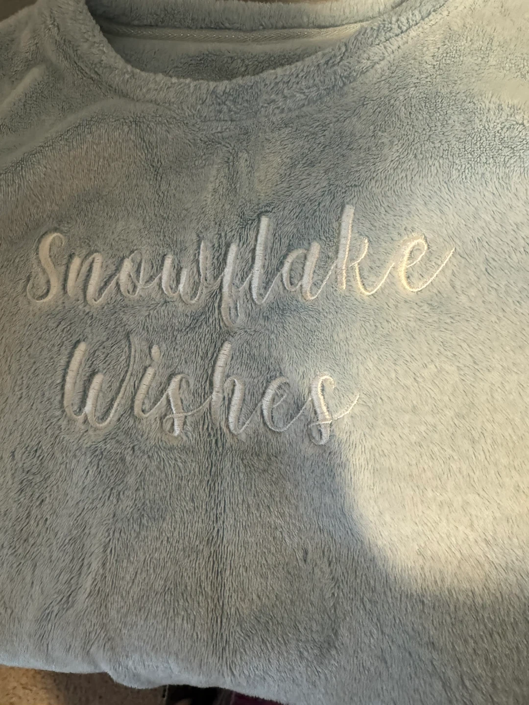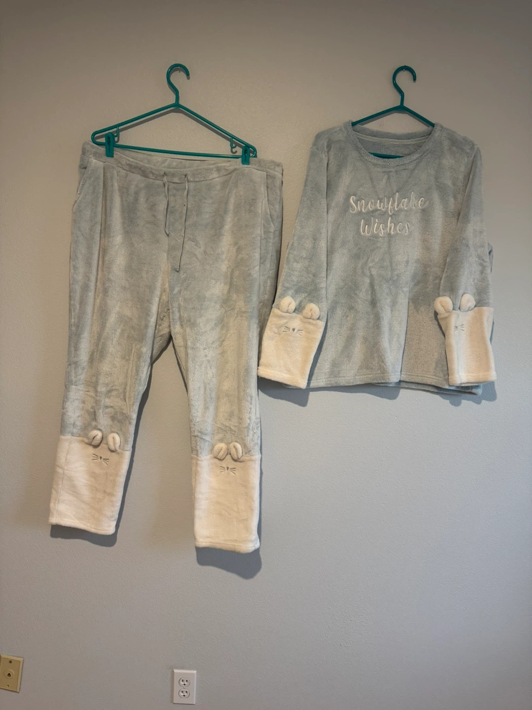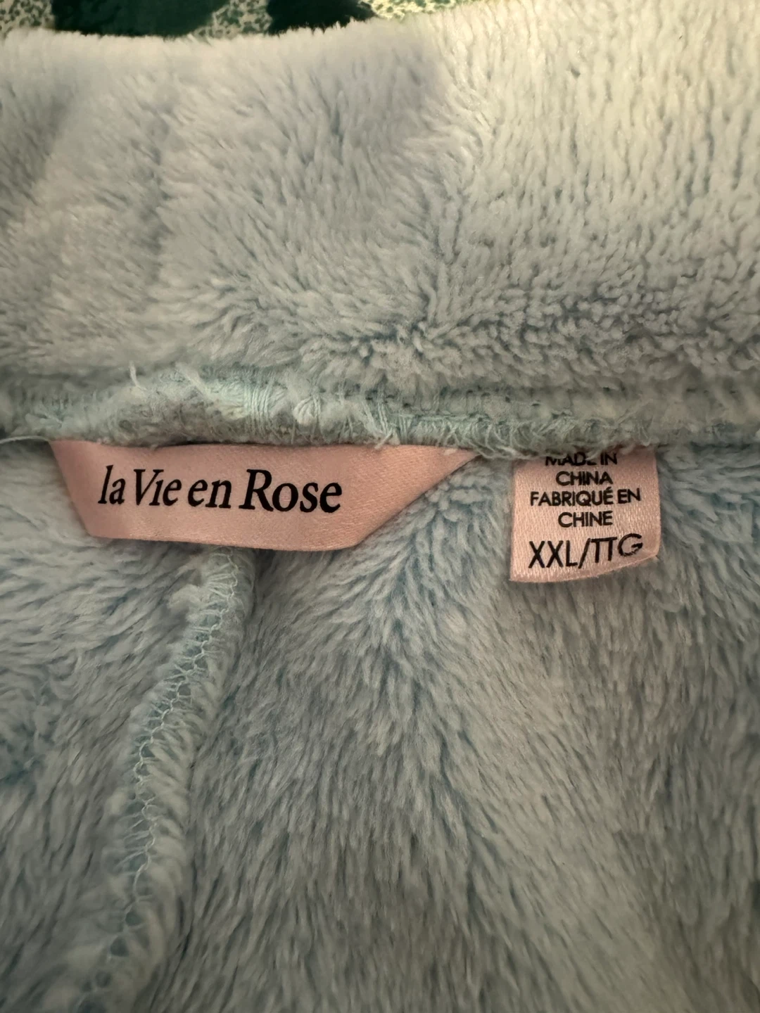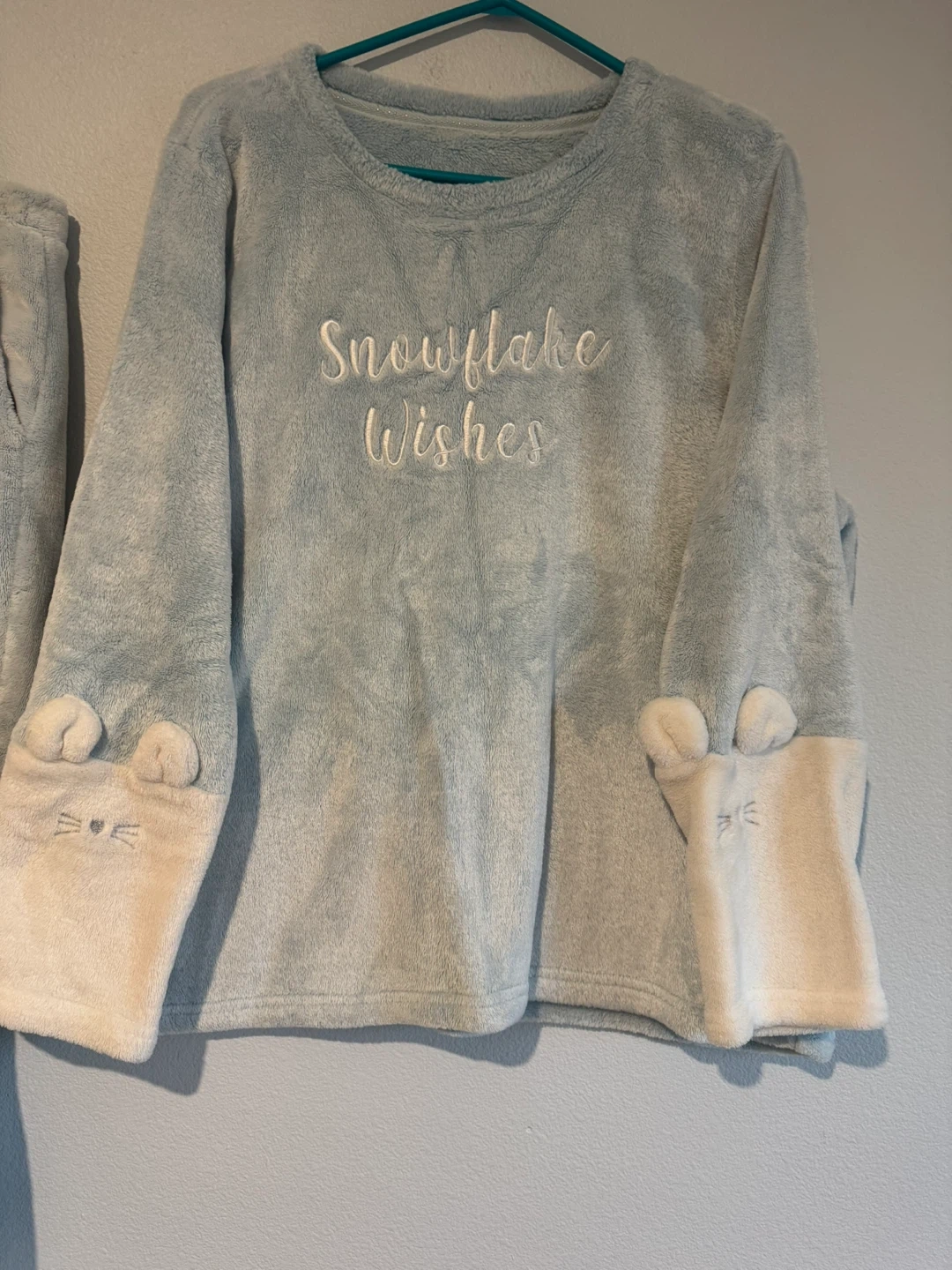 Cozy up with this La Vie en Rose pajama set! It's a soft, light blue colour and a size XXL. The top says 'Snowflake Wishes'. Super comfy for those chilly nights!