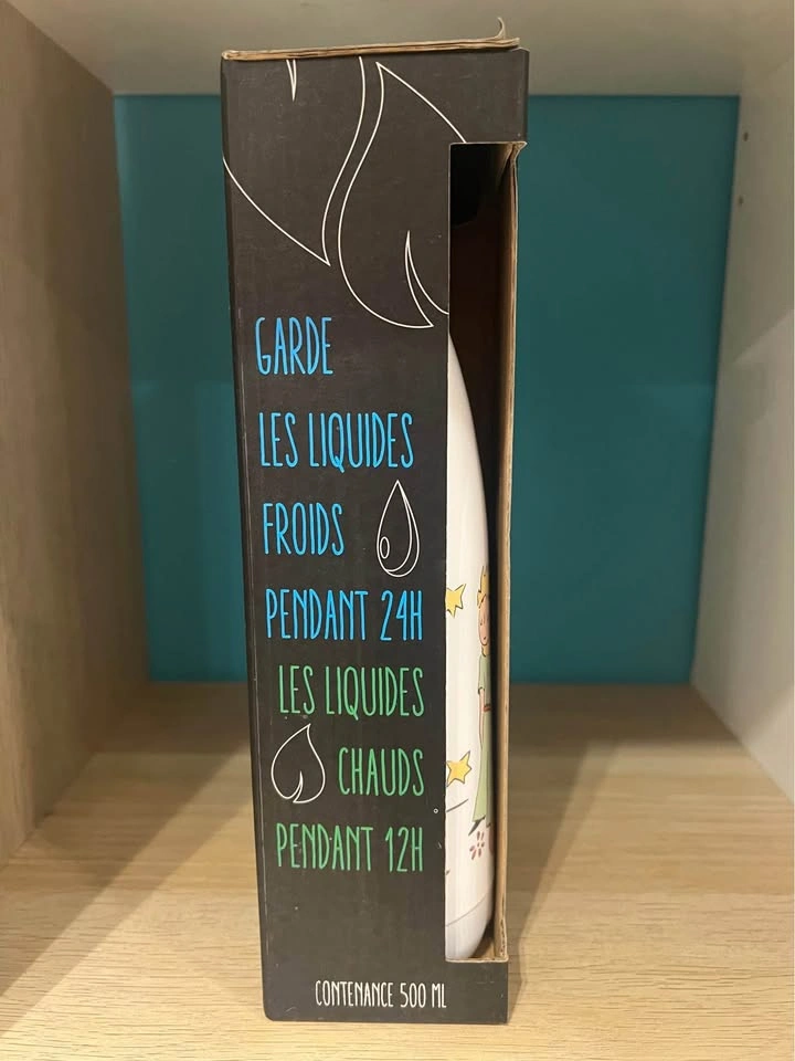 Beautiful eco-friendly stainless steel bottle featuring Le Petit Prince artwork. BPA-free, double-walled, perfect for both hot and cold drinks — practical and collectible!