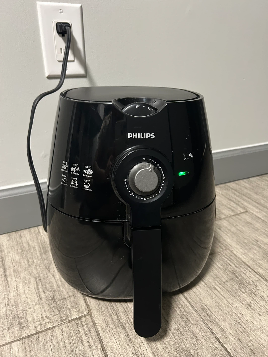 Selling a Philips Airfryer in black! It's in good condition and ready for a new home. Perfect for making crispy fries, chicken, and more without all the oil