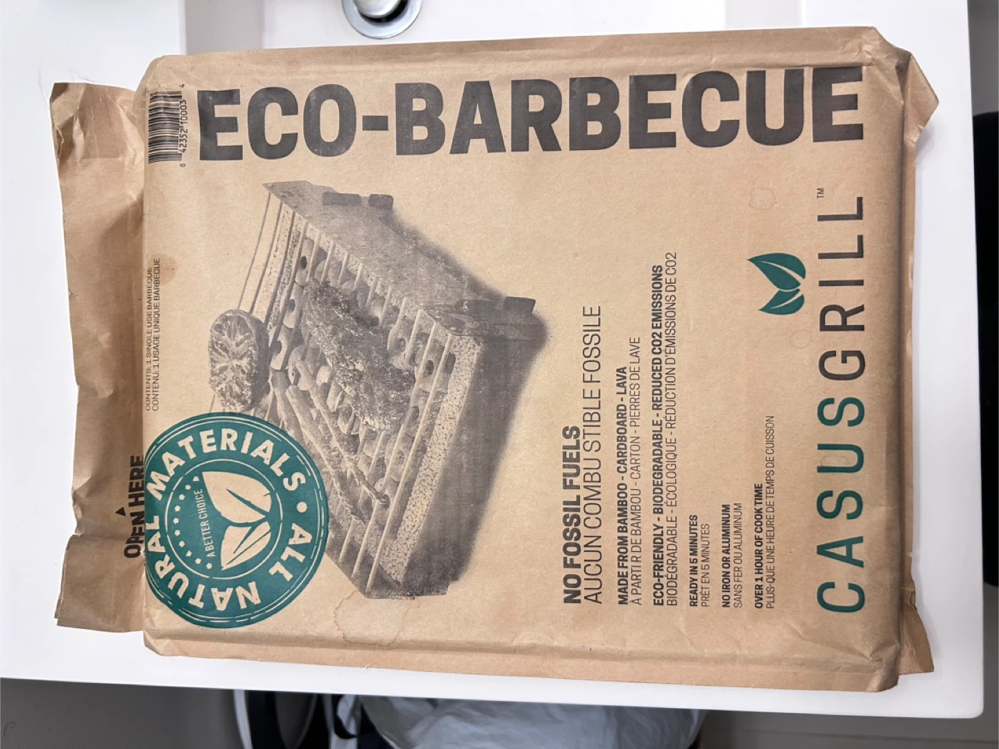 76Selling a CasusGrill Eco-Barbecue, perfect for single use! It's made from natural materials like bamboo, cardboard, and lava. It's eco-friendly, biodegradable, and reduces CO2 emissions. Ready to cook in just 5 minutes and provides over 1 hour of cook time