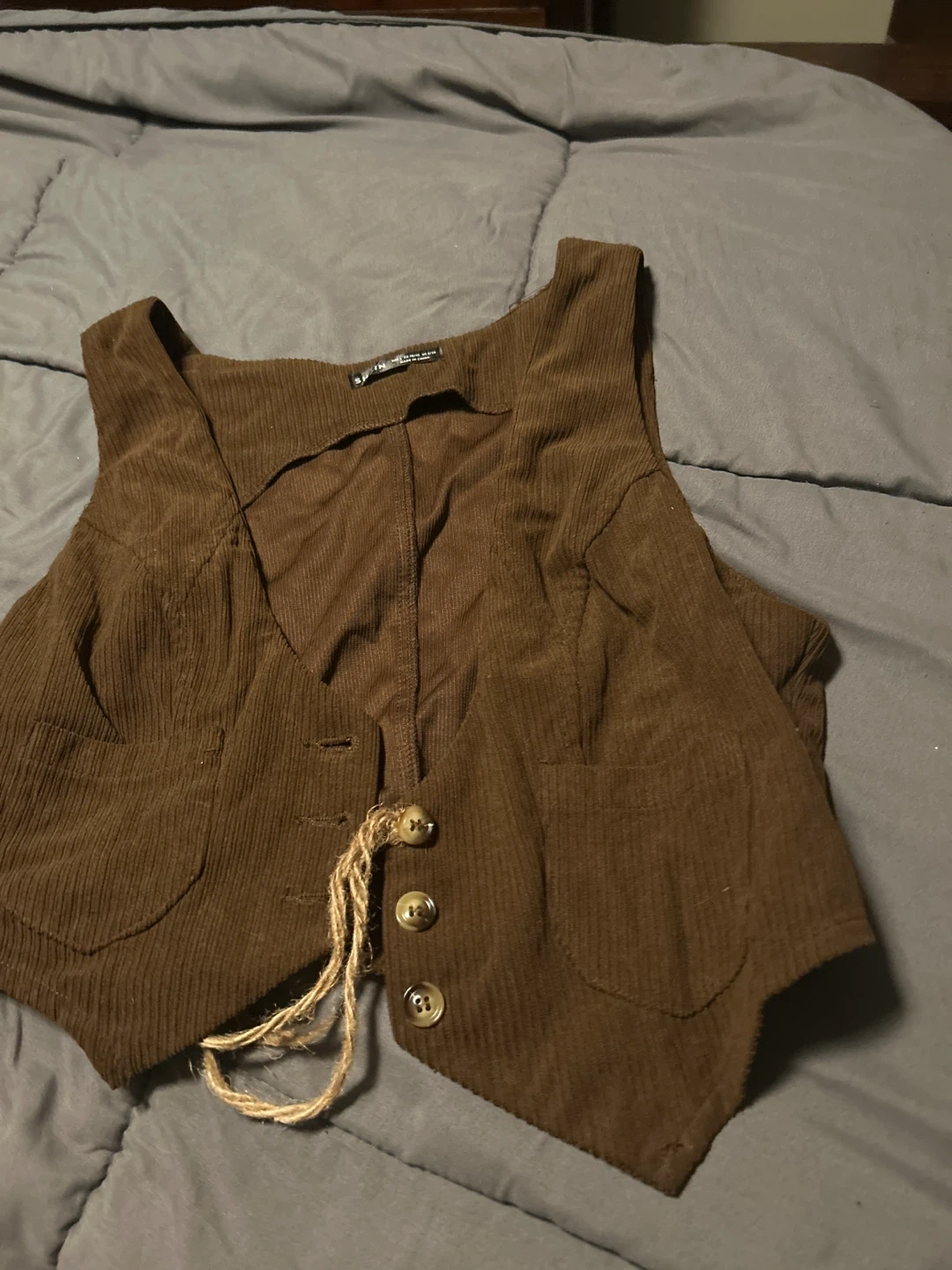 Buy & SellShein Brown Corduroy Vest - Size L 🥕Shein Brown Corduroy Vest - Size L 🥕$3Here's a cute brown corduroy vest from Shein! It's a size large (US 8/10, EU 40/42). It's in great condition and ready for a new homeConditionGoodSize5BrandSheinWHERE TO MEETKeswickView MapSELLERverifiedDouble SsGeorgina1113 reviews0 chats·0 favorites·1 views