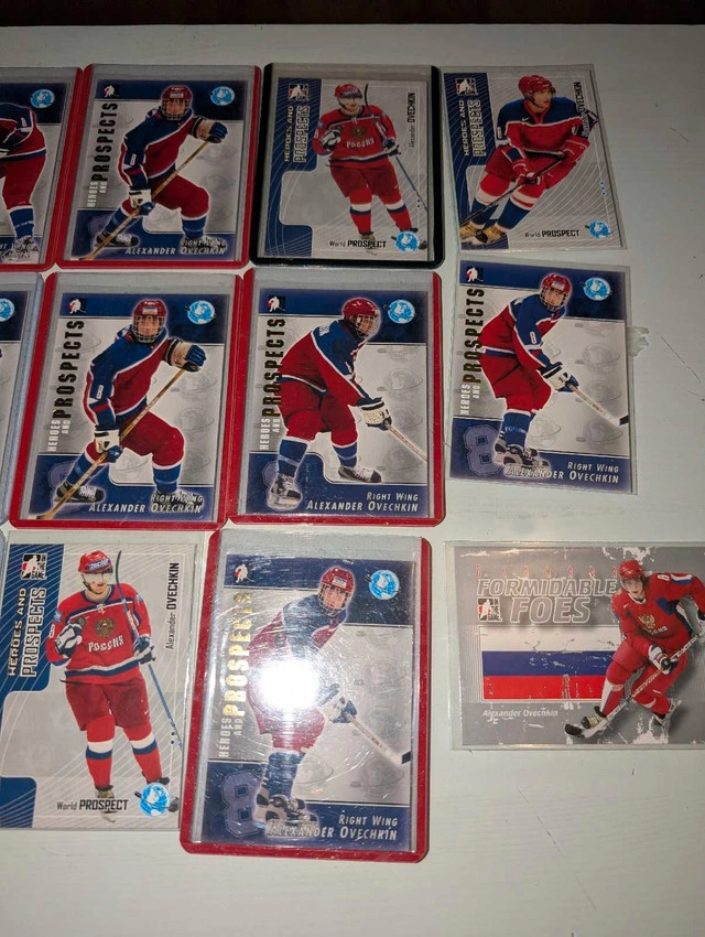 $30 for everything. Own a piece of hockey history with these Alexander Ovechkin hockey cards, showcasing the early career of a legendary player. These cards capture Ovechkin's time as a prospect, highlighting his skill and potential. They're in used condition and would be a great addition to any hockey memorabilia collection.