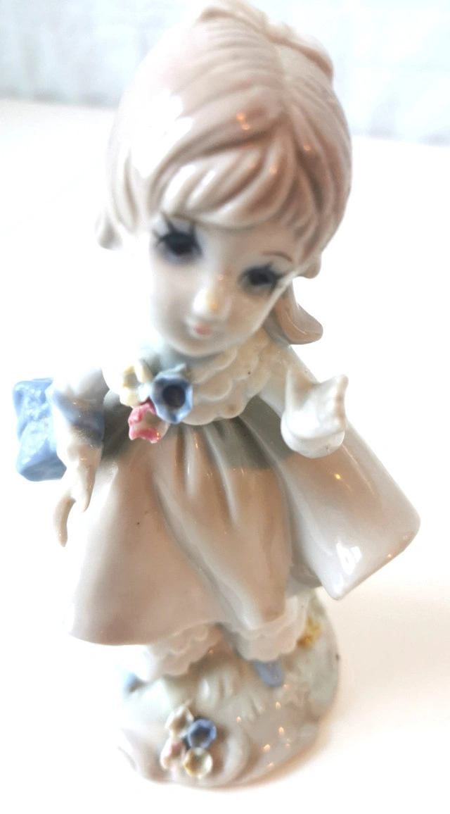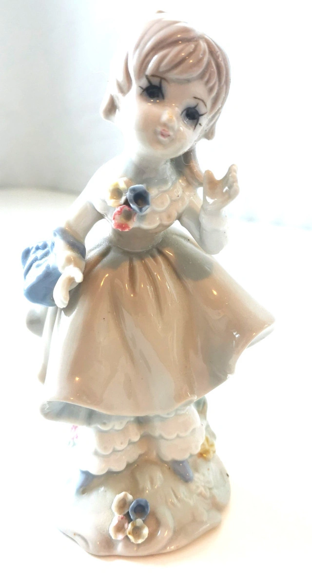 Girl in Dress Vintage Ponytail Porcelain Figurine Made In Taiwan