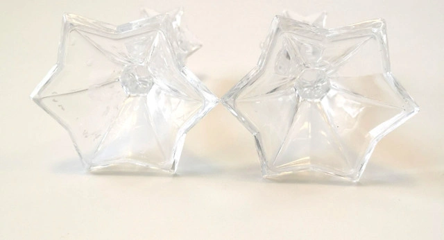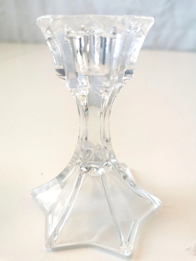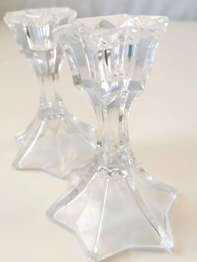 Elevate your home decor with this pair of elegant vintage crystal candle holders. Designed to complement any setting, these medium-sized holders are crafted from premium crystal, boasting a timeless clear hue that adds a touch of sophistication to your space. The set includes two candle holders, each featuring intricate crystals that capture the light and add a sparkling effect to your surroundings. Perfect for all occasions, these unbranded pieces are versatile and serve as a stunning backdrop for your favourite candles, enhancing the ambiance of any room. Good vintage condition light wear please reference photos as they are part of the description of the item. Dimensions- Height 4.25 inches, Diameter widest point at base 2.5 inches. Cash accepted