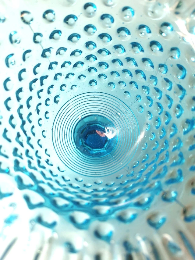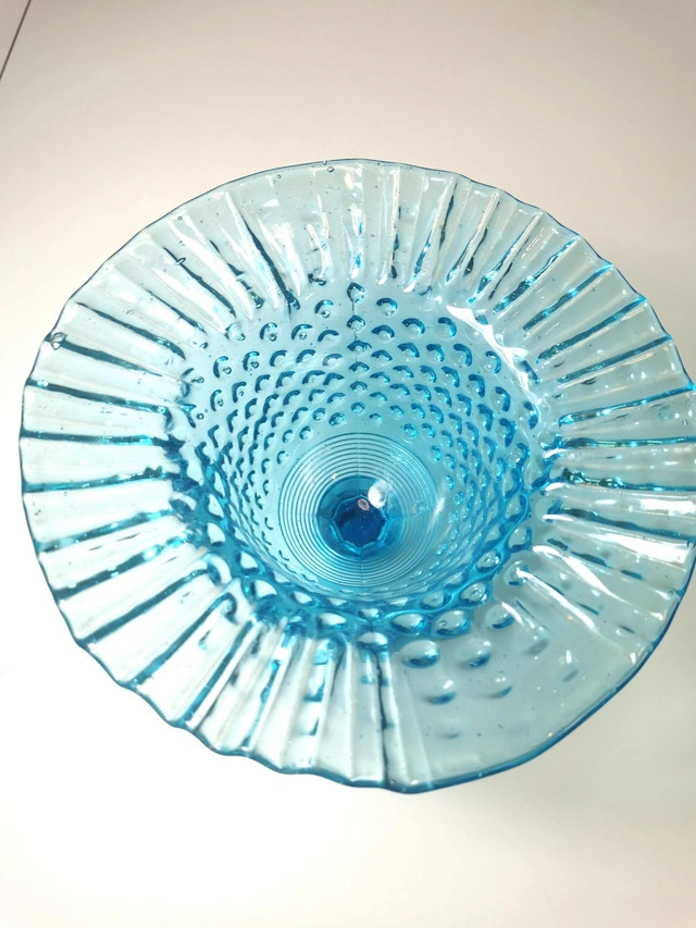 Pedestal Dish UV Reactive Fenton - Aqua Blue Hobnail Ruffled Bo