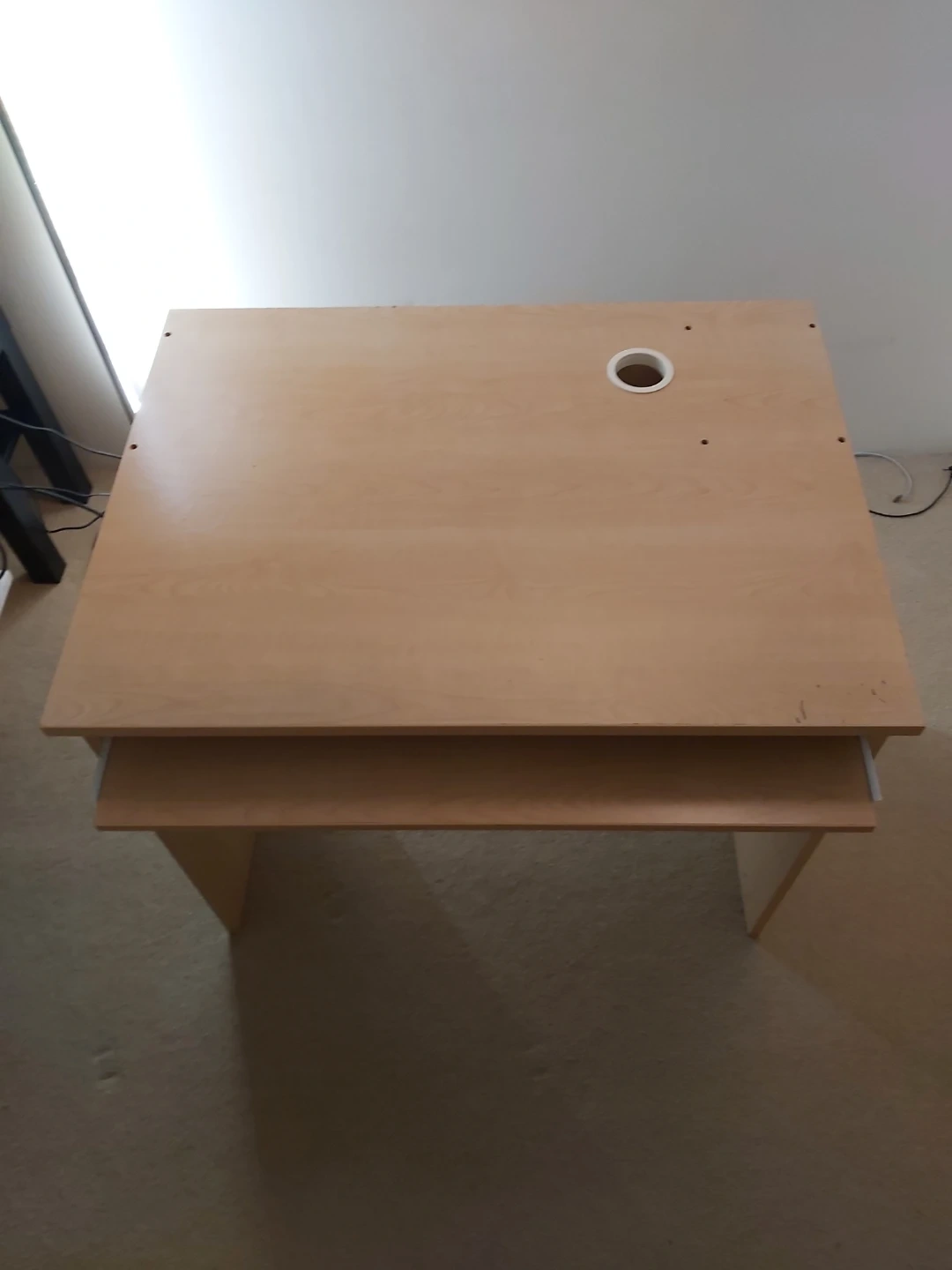 Selling a light brown desk that's perfect for a home office or study space. It features a convenient keyboard tray to help keep your desk organized and tidy. It is in good condition and ready for a new home!