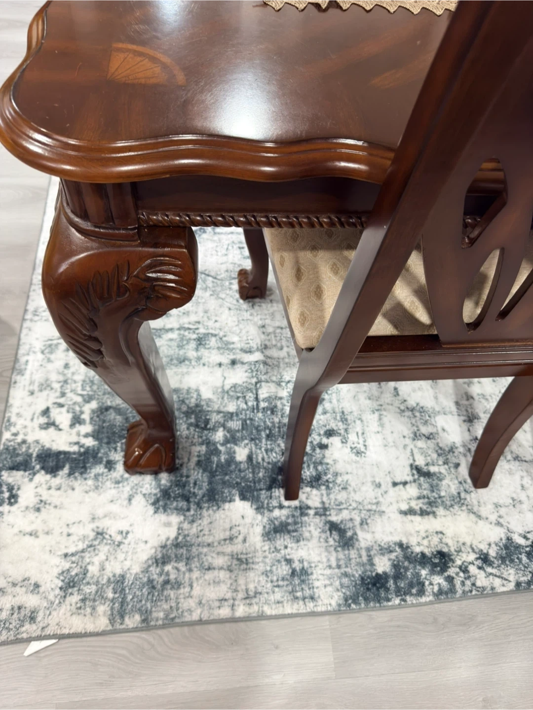 Entertain in style with this stunning 7- piece solid wood dining table set! Featuring an adjustable mid-section for versatility, this set is perfect for hosting family gatherings and dinner parties with friends. Minor scratches only add character to this beautifully crafted piece. Make unforgettable memories with your loved ones around this gorgeous dining table!