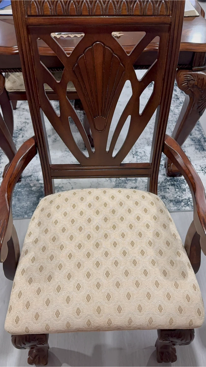 Entertain in style with this stunning 7- piece solid wood dining table set! Featuring an adjustable mid-section for versatility, this set is perfect for hosting family gatherings and dinner parties with friends. Minor scratches only add character to this beautifully crafted piece. Make unforgettable memories with your loved ones around this gorgeous dining table!
