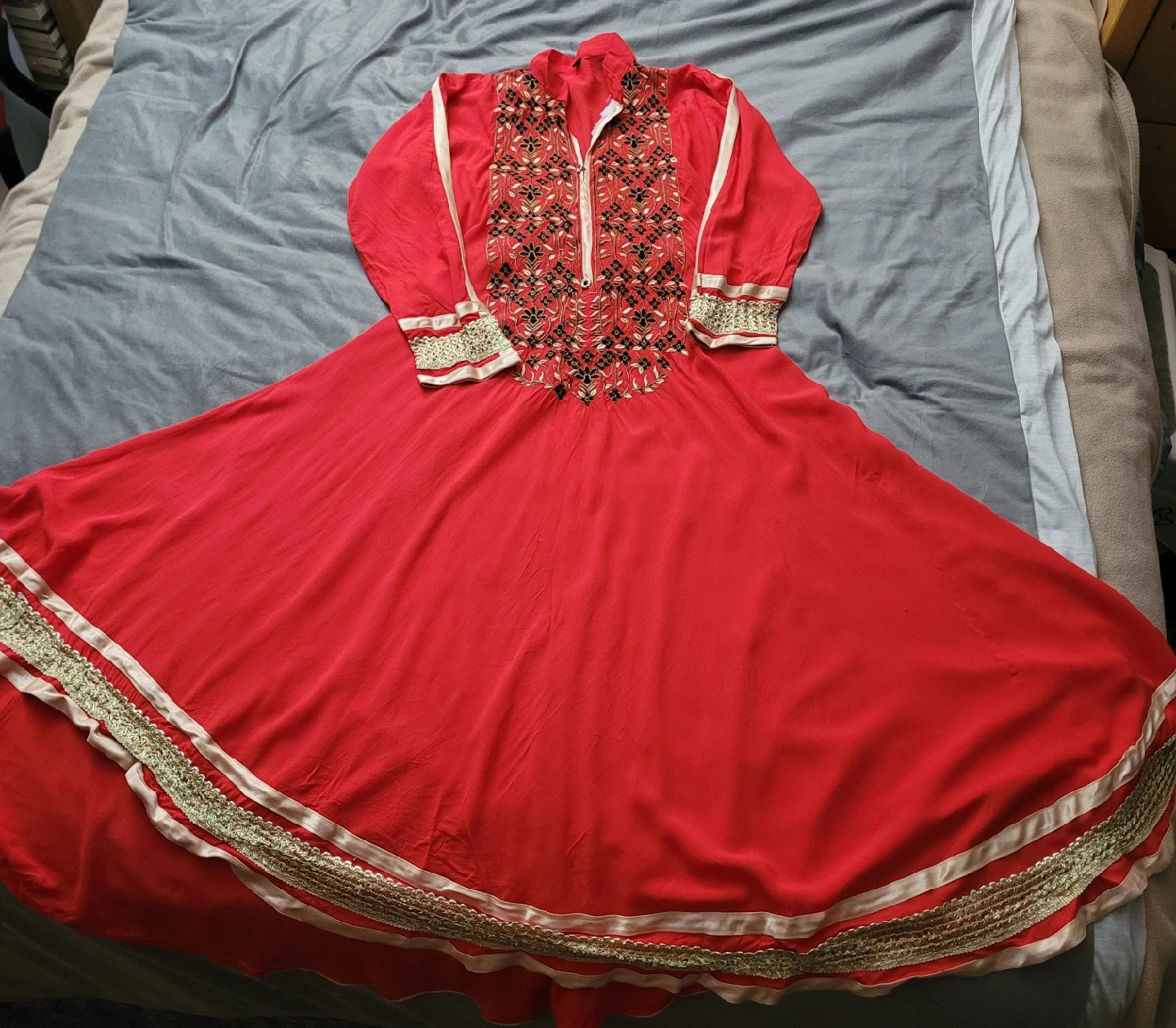 1000+Elevate your wardrobe with this vibrant red embroidered dress, perfect for special occasions! This eye-catching piece features intricate floral embroidery on the bodice and sleeves, adding a touch of elegance to the flowing silhouette. The dress is a size 42 and has a unique, stylish design that’s sure to turn heads. The dress is in good condition, with minor signs of wear. It's been carefully stored and is ready to be worn to your next event. This beautiful dress is just waiting for its next twirl around town! And remember, if the ad is up, it's still available!
