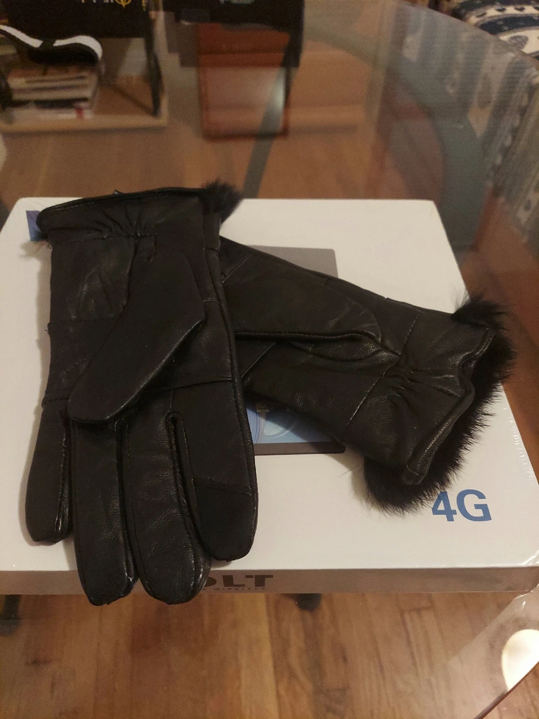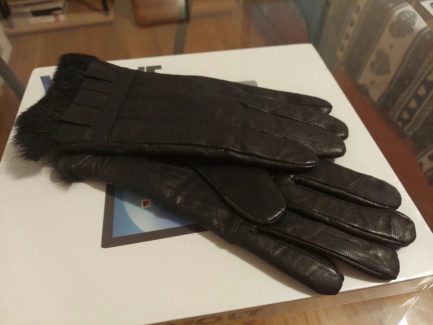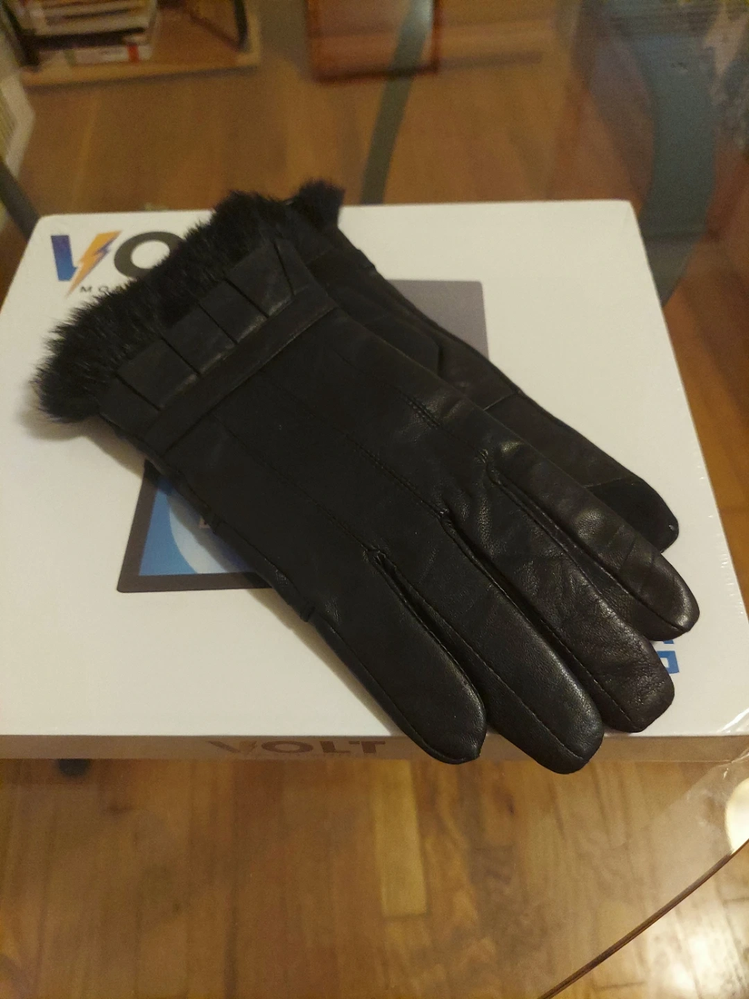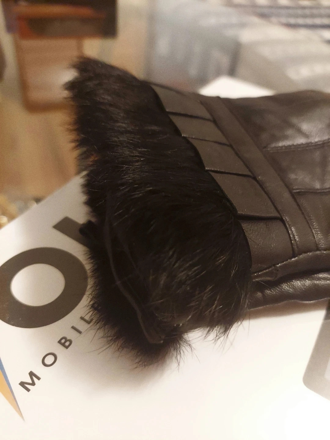 Condition: Like NEW **Sofia Cashmere**Leather & Cashmere Gloves With Faux Fur Cuffs. ** Size: M=7 to 7 1/2 inches