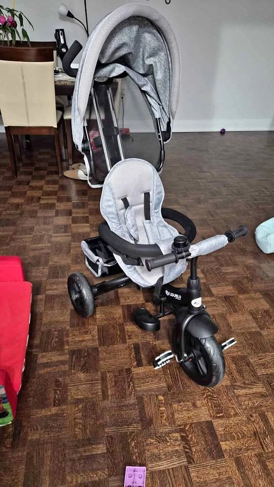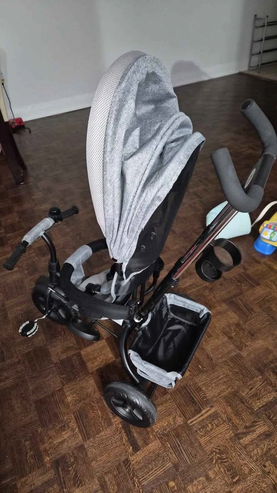Qaba Toddler Tricycle, 6 in 1 Baby Bike Stroller with Foldable Canopy, Storage Basket, 5-Point Safety Harness, Kids Trike for 1-5 Years Old, Grey. Condition brand new. Bought October 3rd (a month ago).