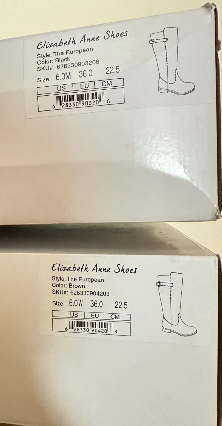 Selling a pair of Elizabeth Anne 'The European' boots! They come in two colours, black and brown, and both are in US size 6.